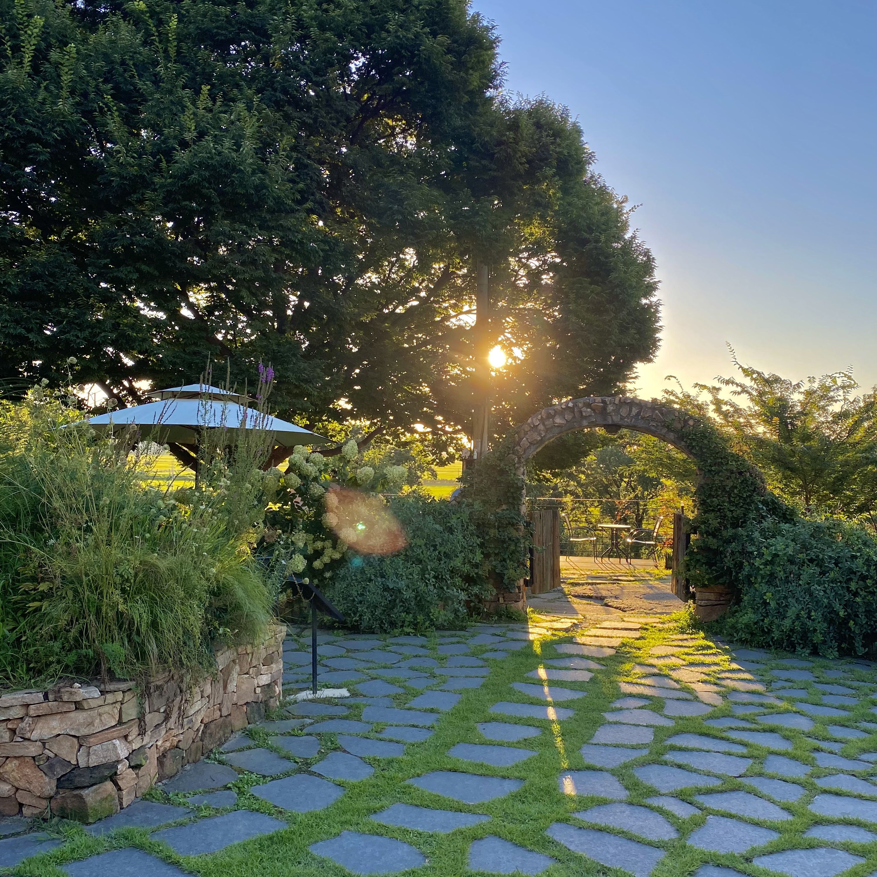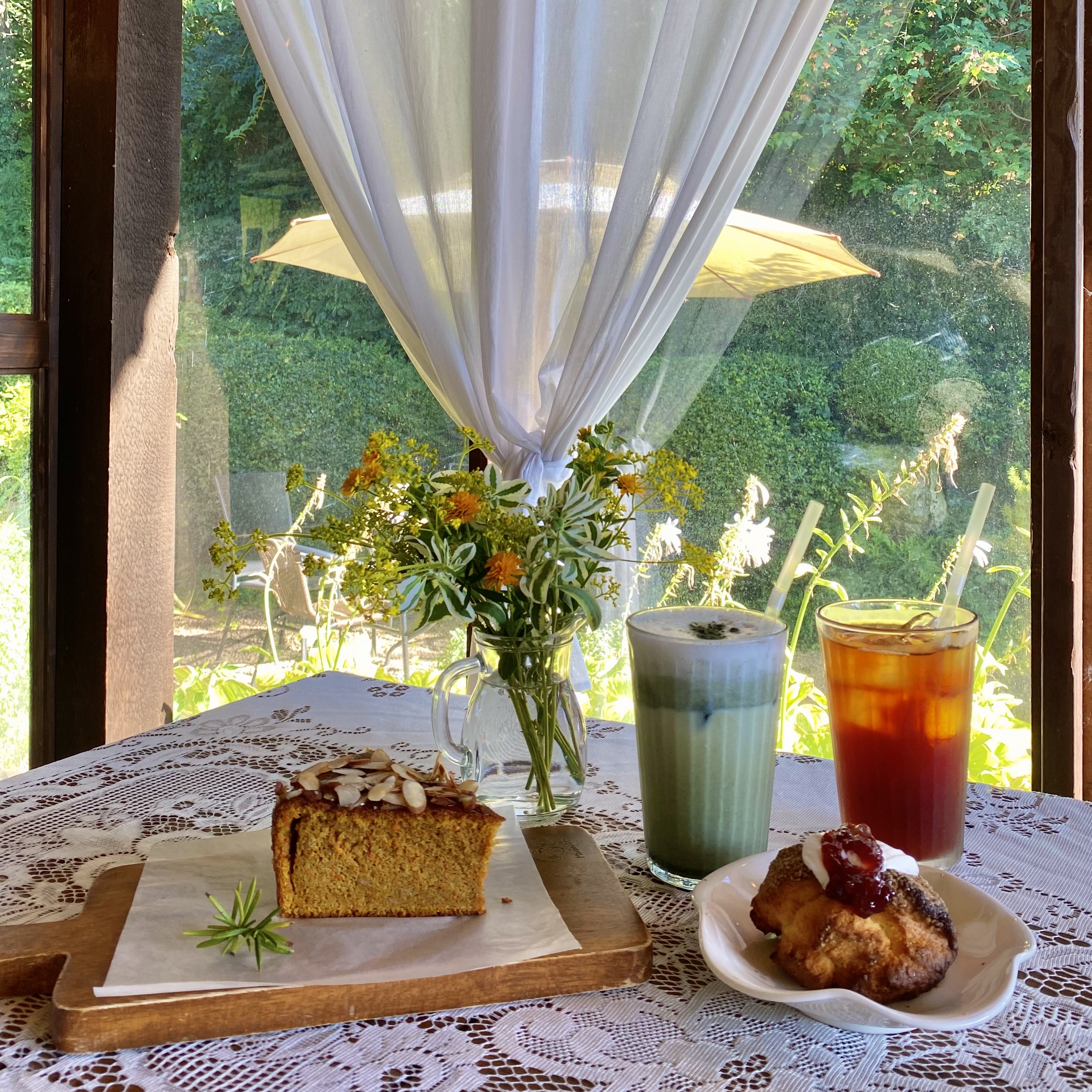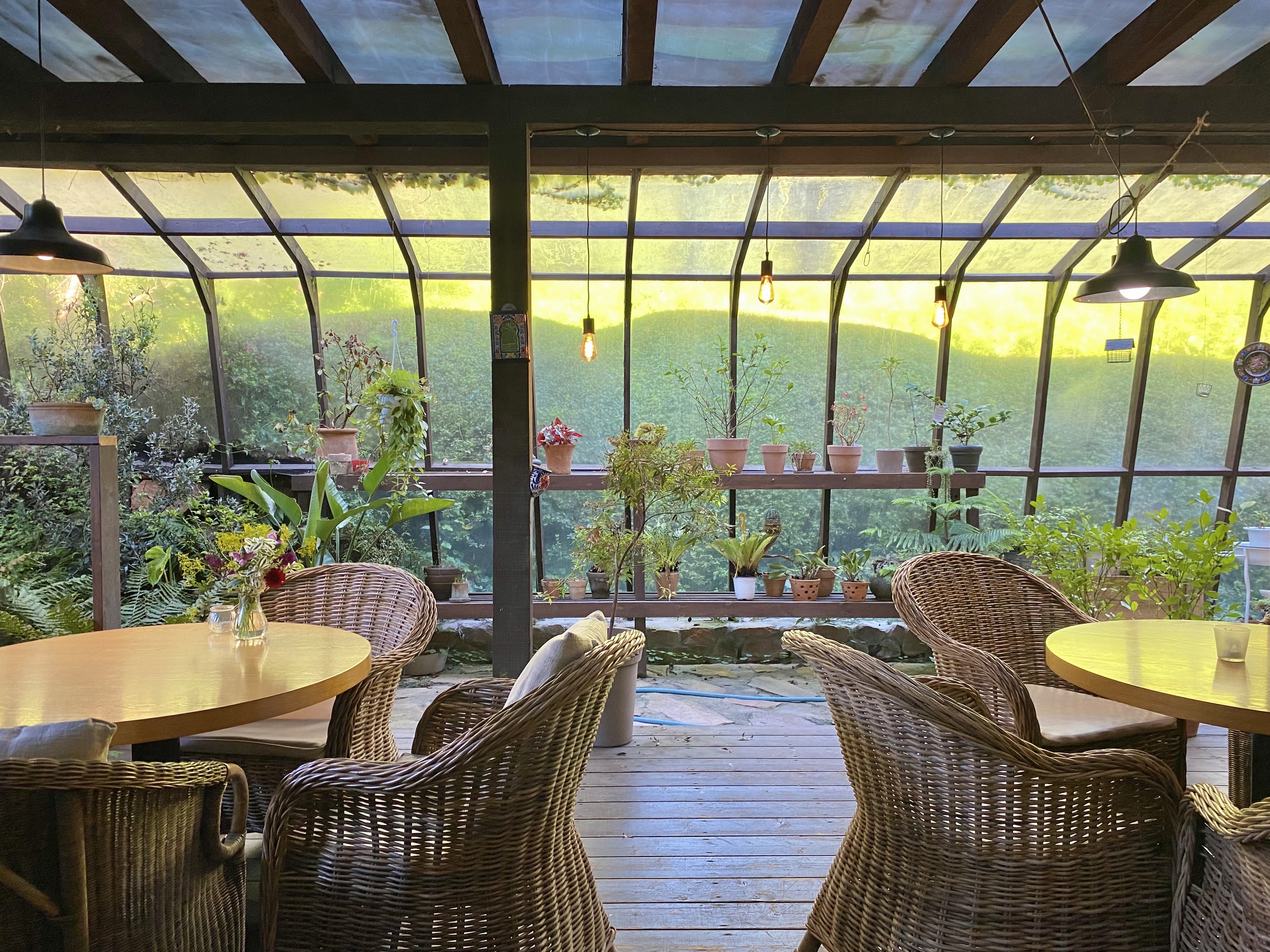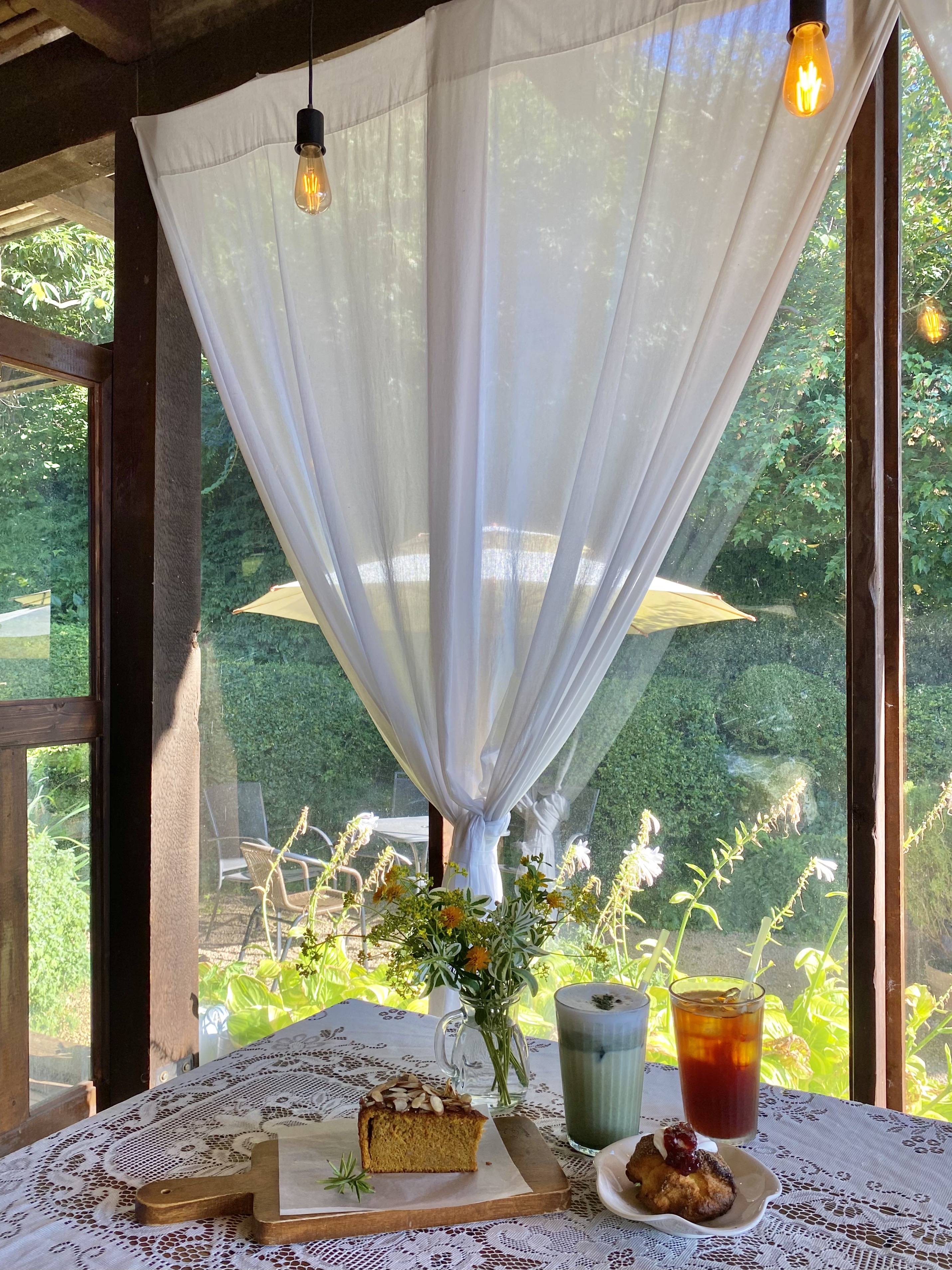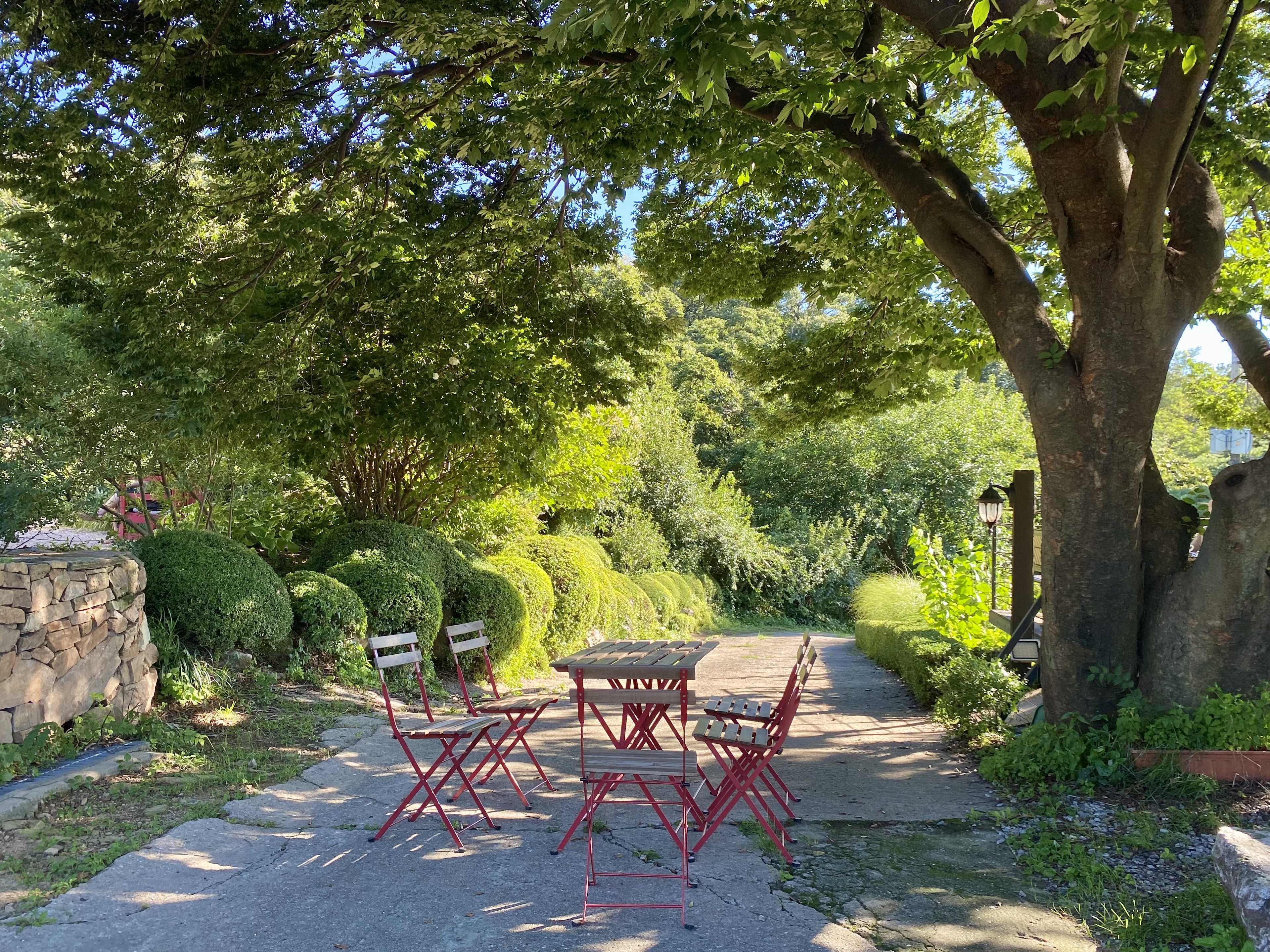 수국이 감싸고 있는 야외 자리가 이어져있다!