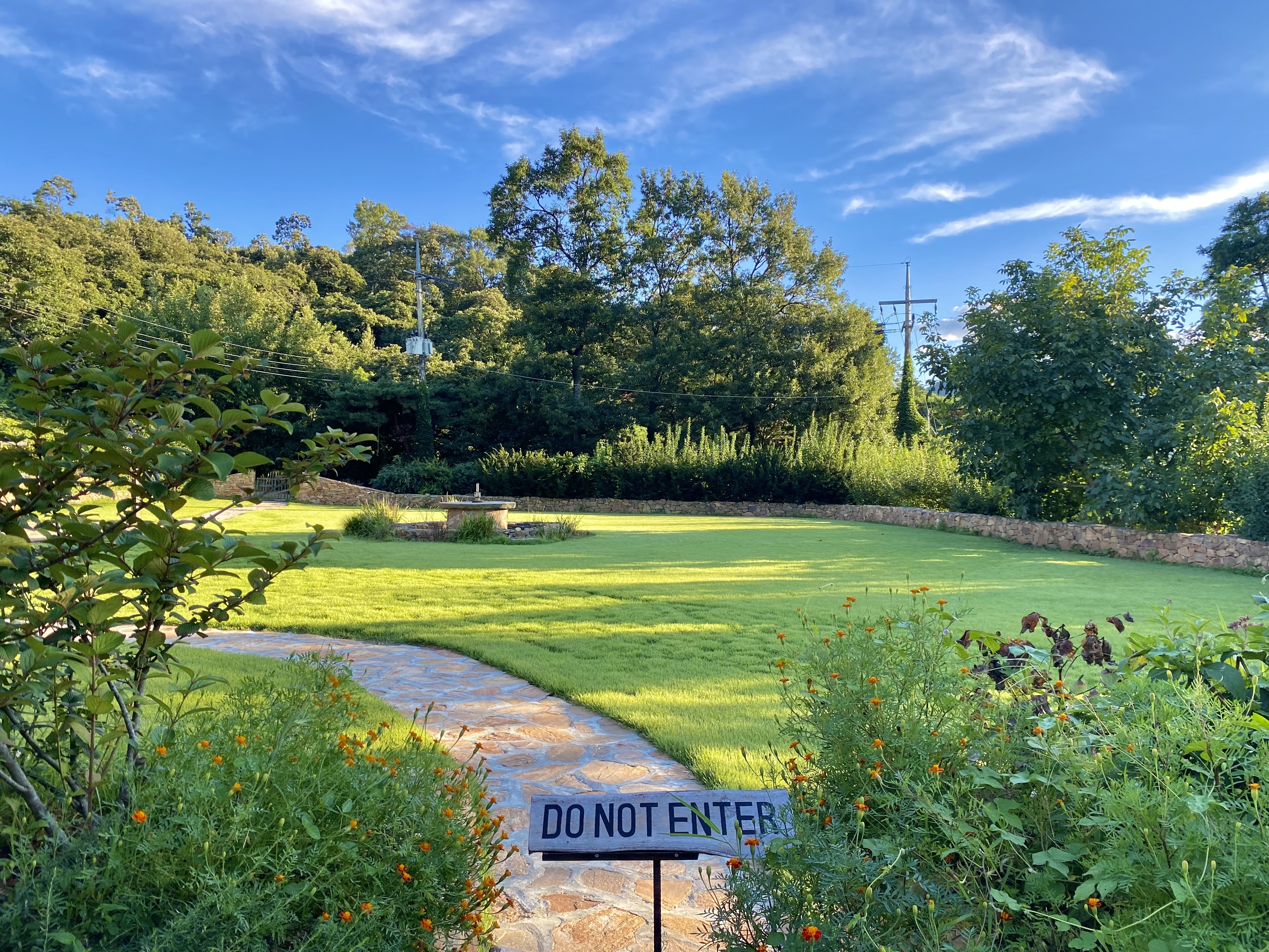 잔디밭으로 들어가는 길이 있고