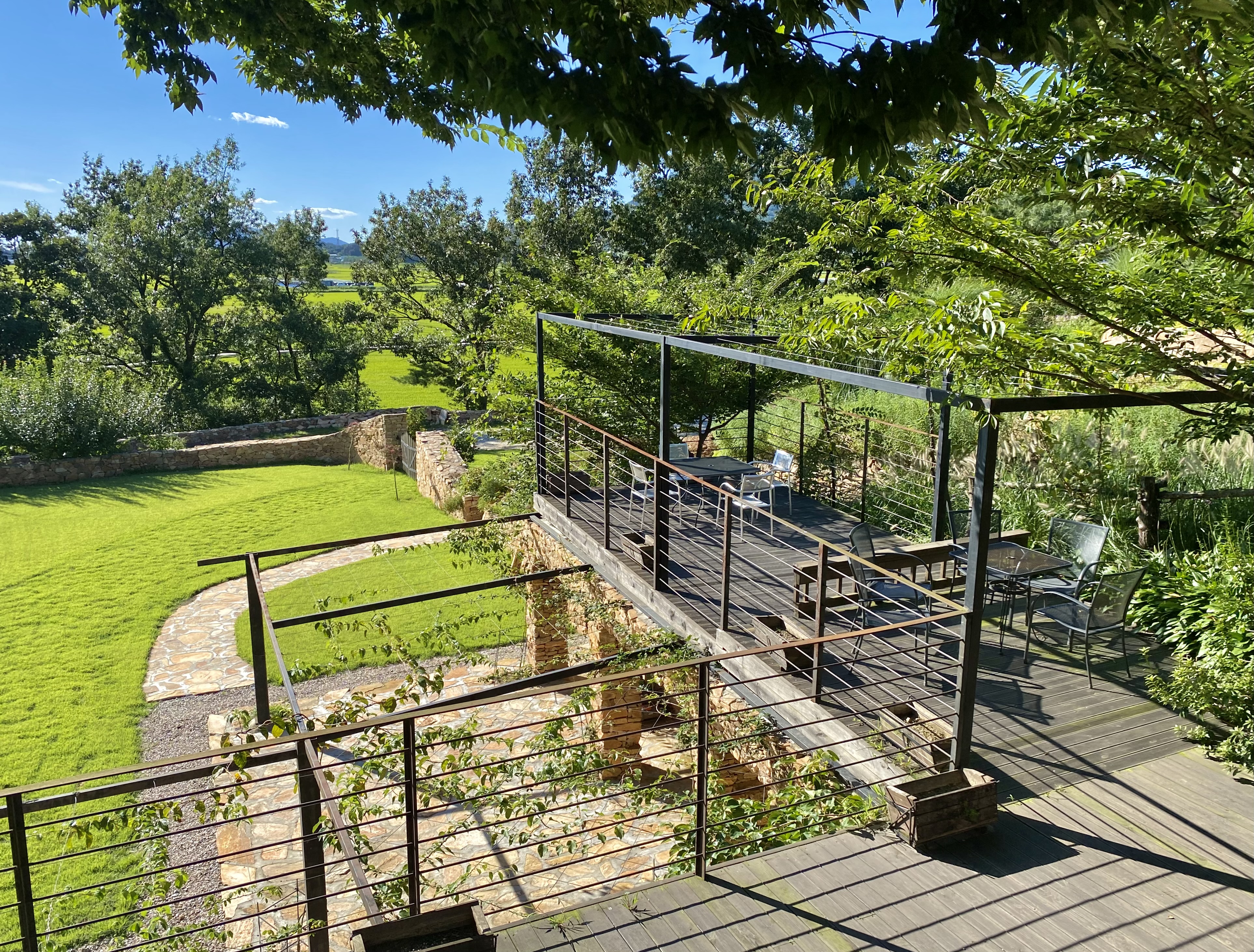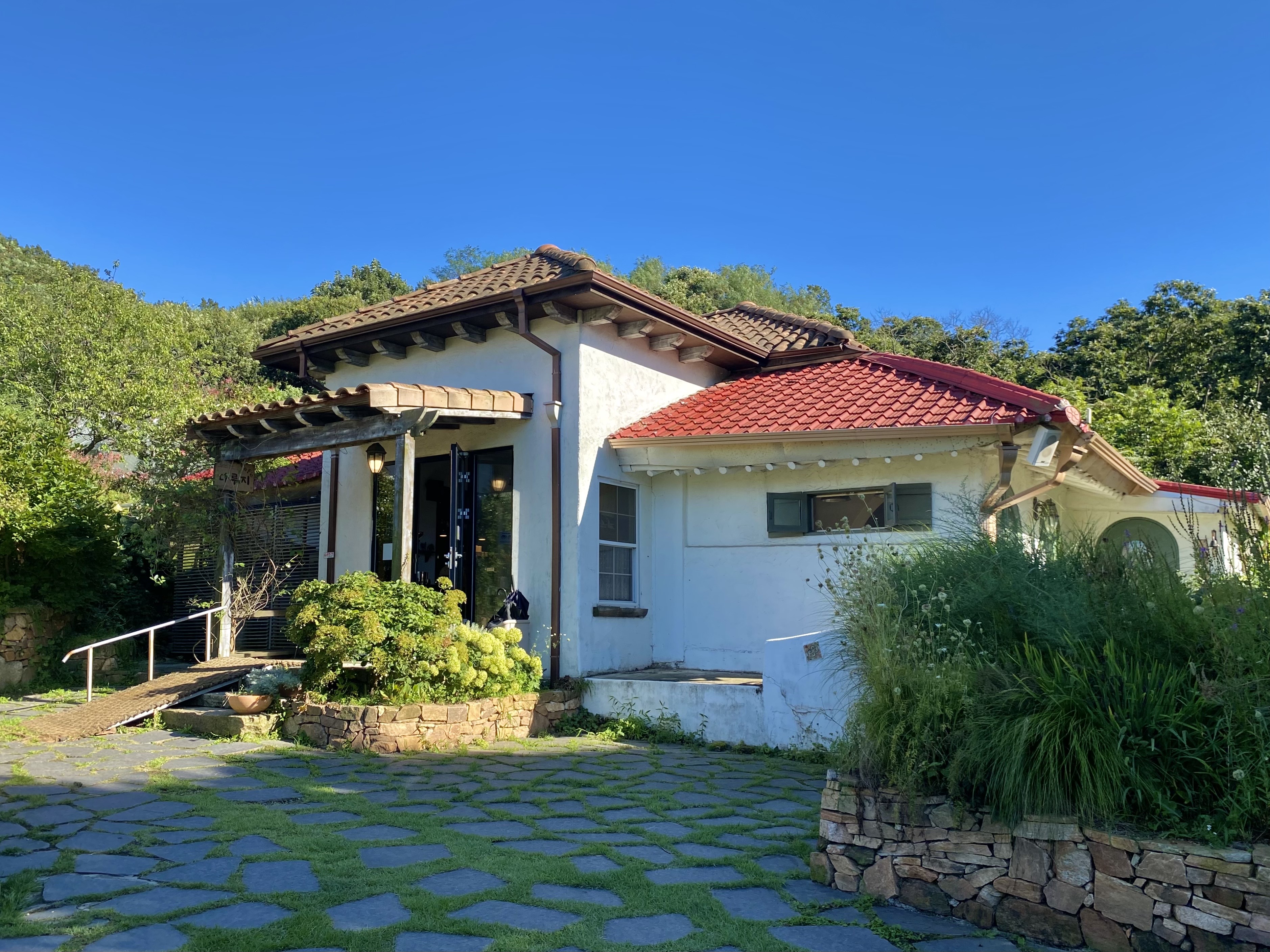 흐드러지게 핀 수국들이 테라스를 감싸고 있다!