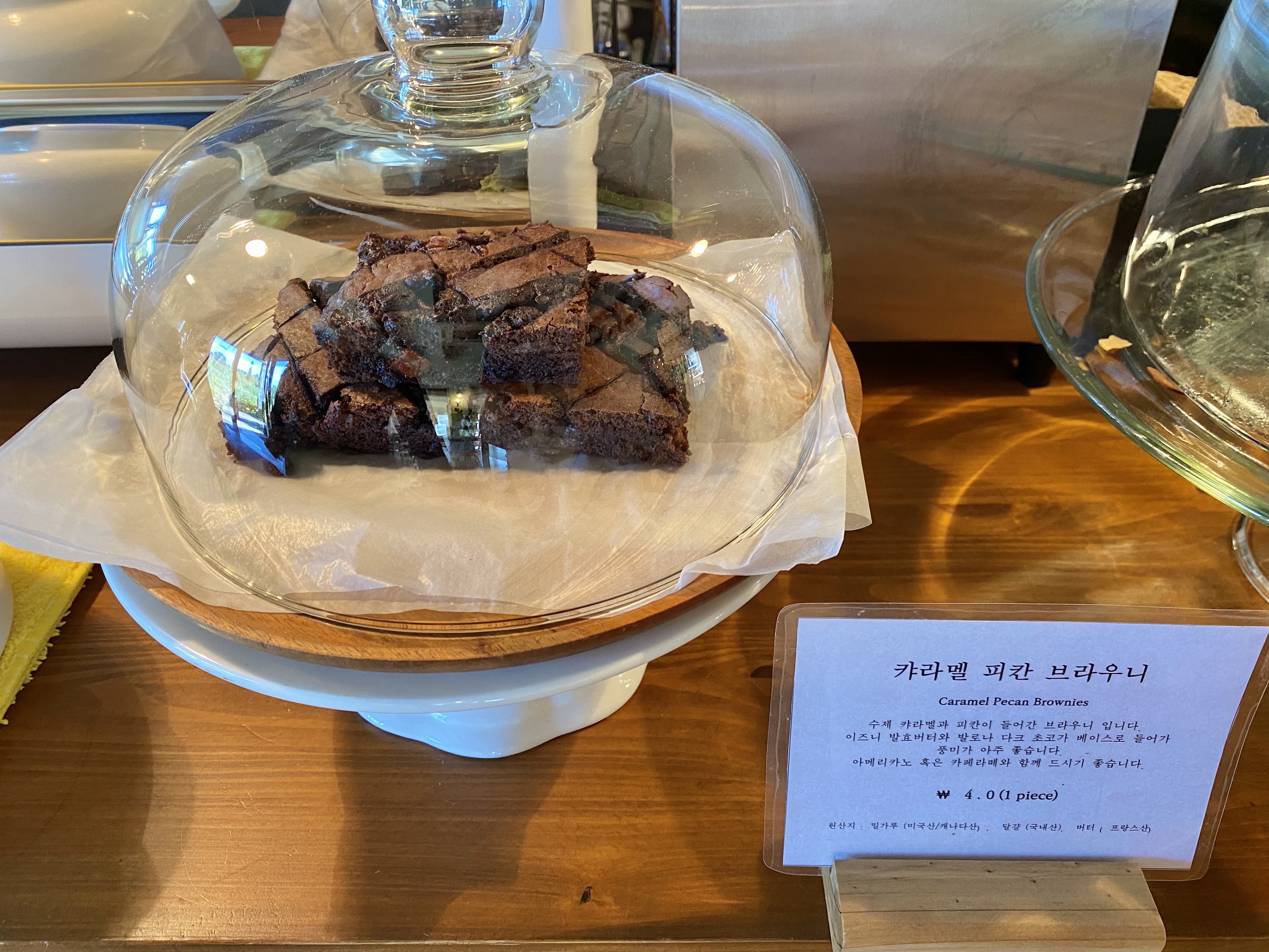 수제카라멜과 피칸이 올라간 브라우니라는데