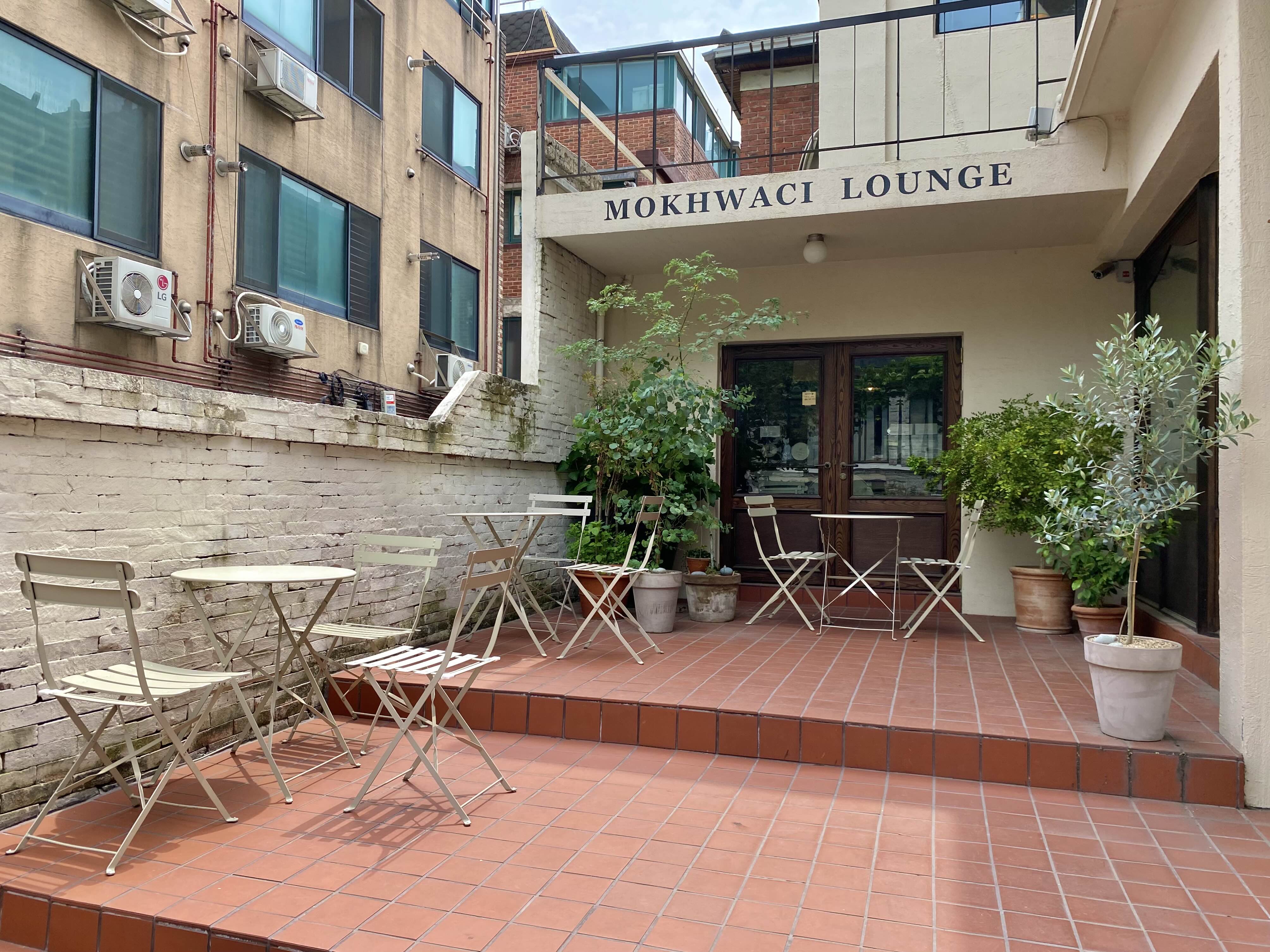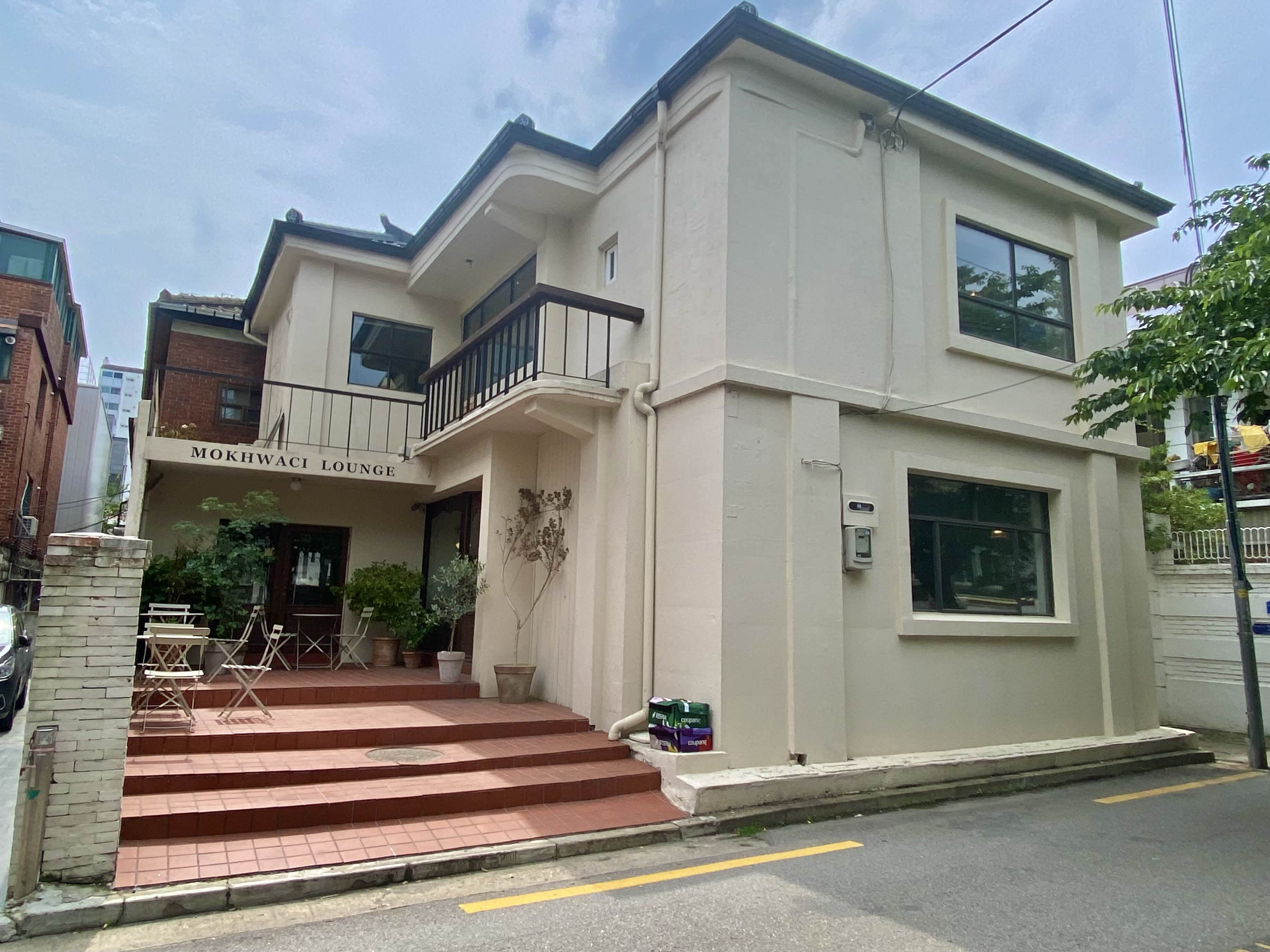 붉은 타일의 계단이 ‘목화씨라운지’ 입구이며,