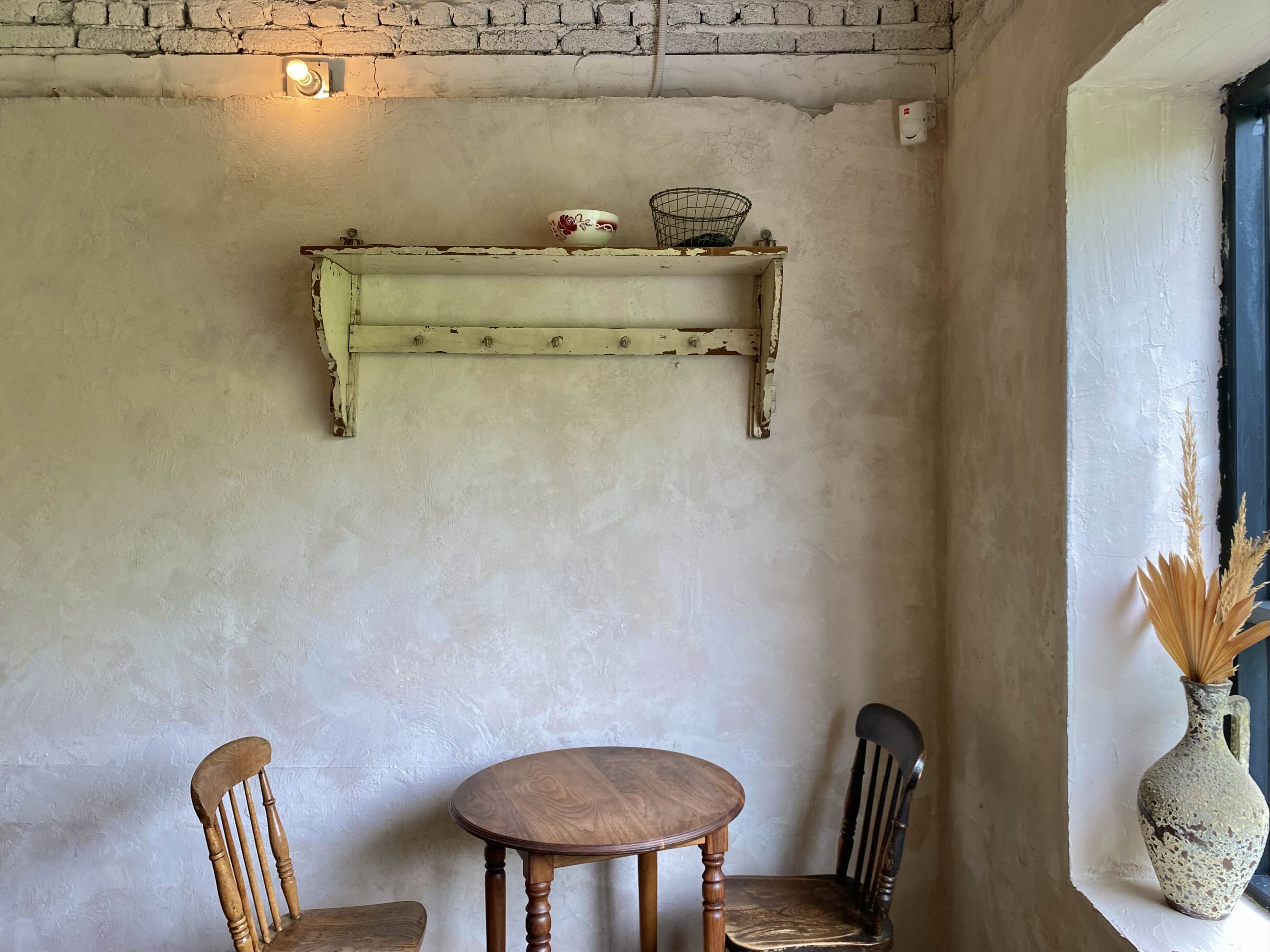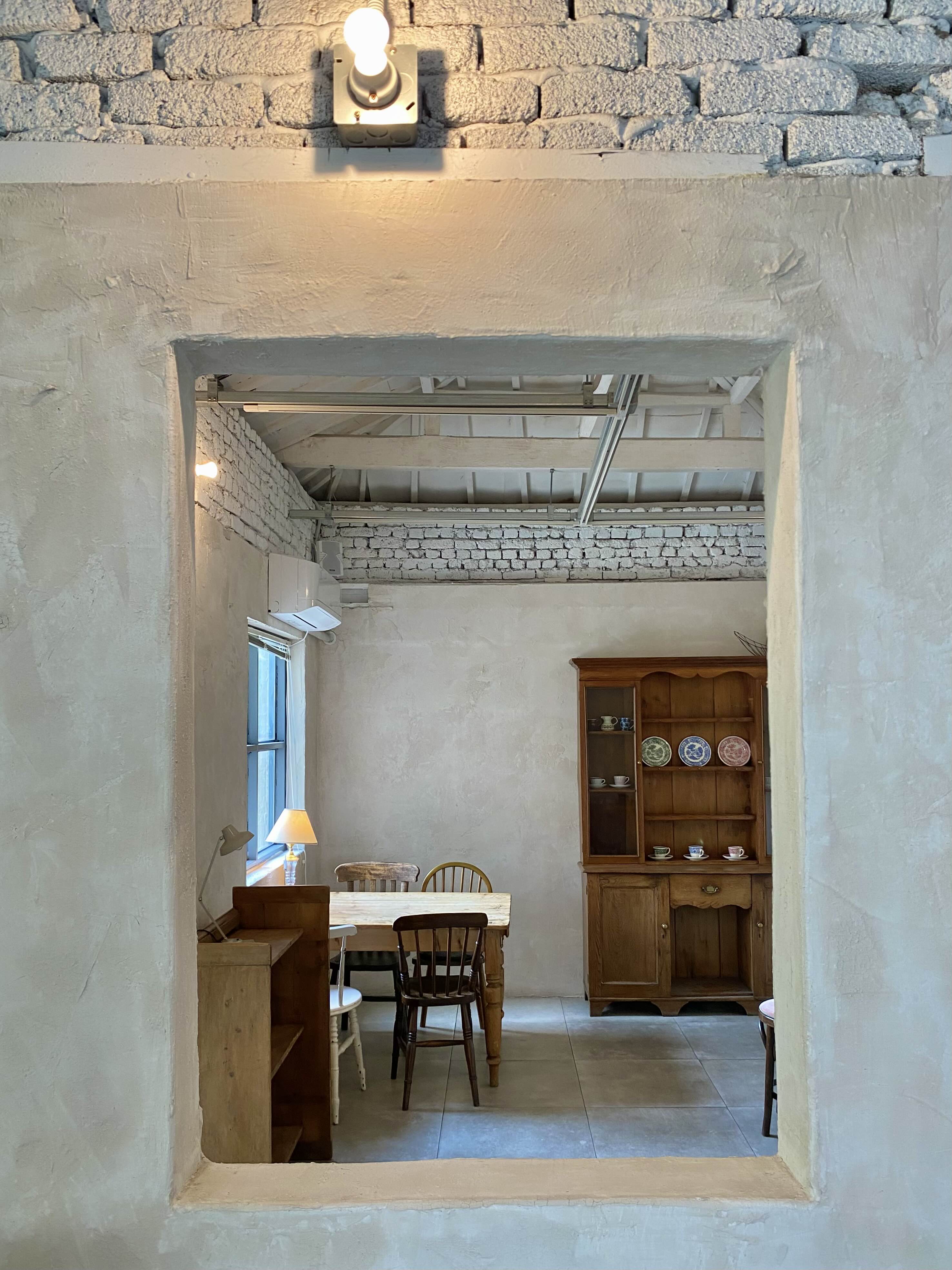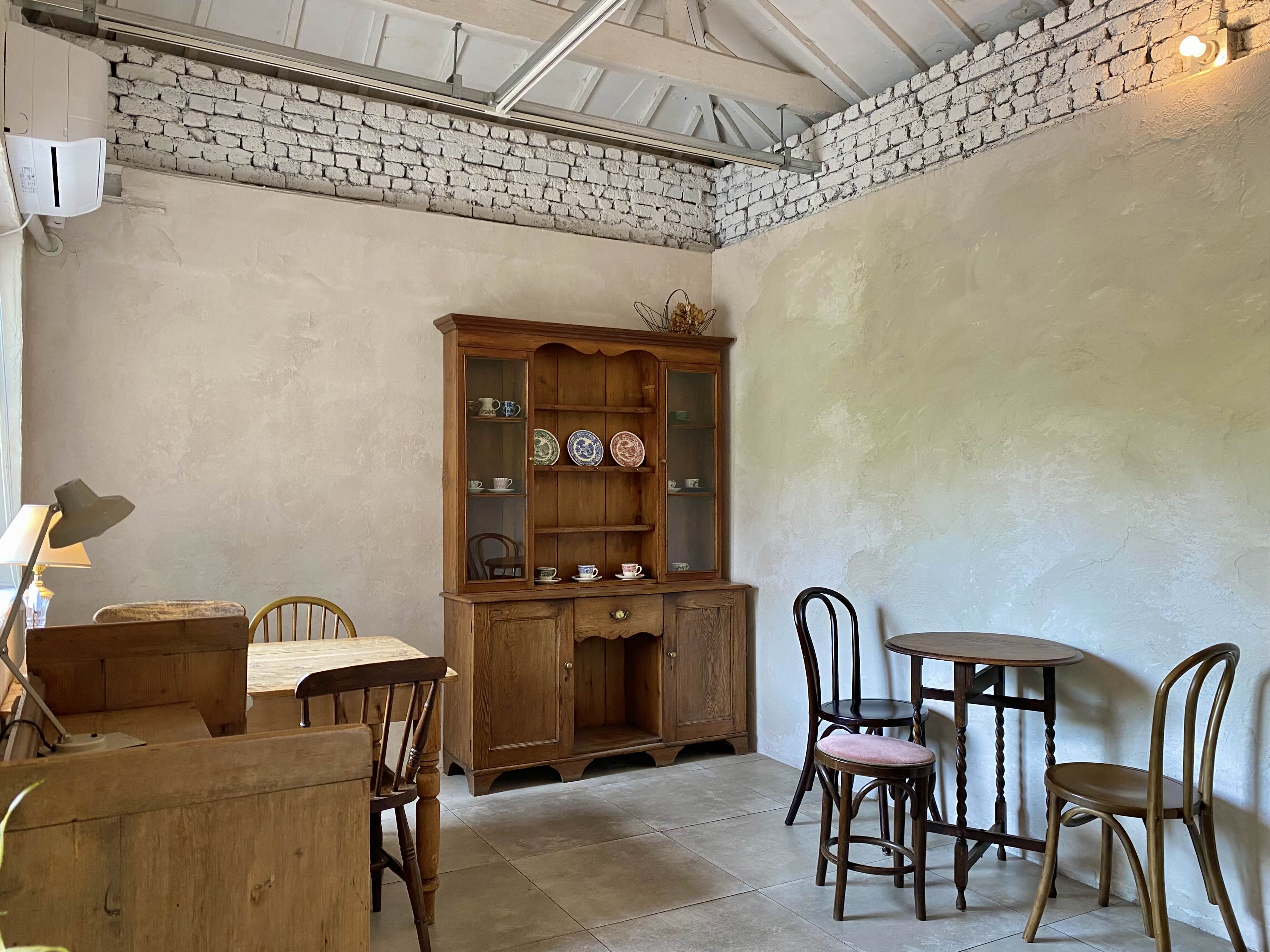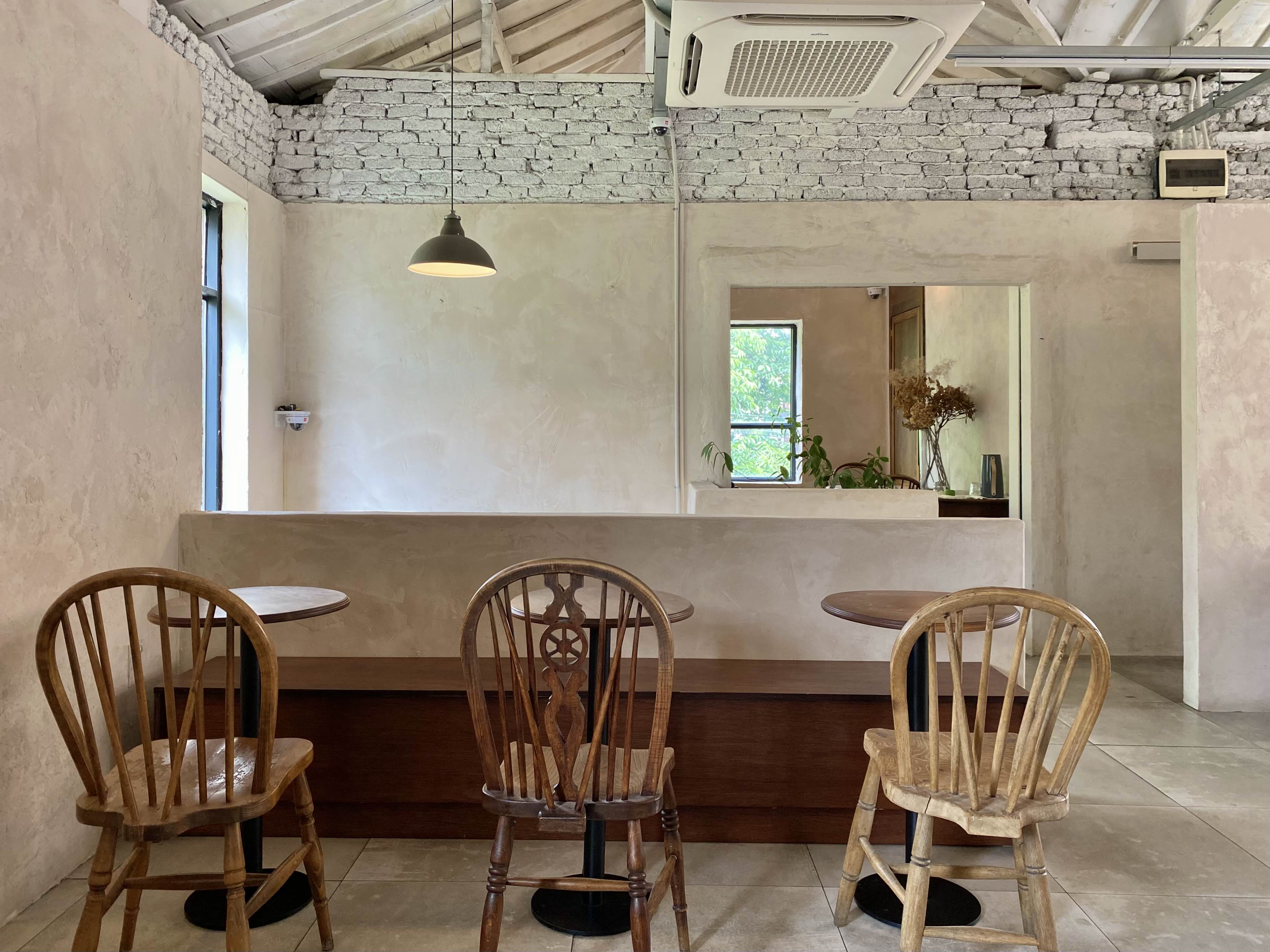 밝은 베이지톤으로 칠해진 주택 개조 카페이다!