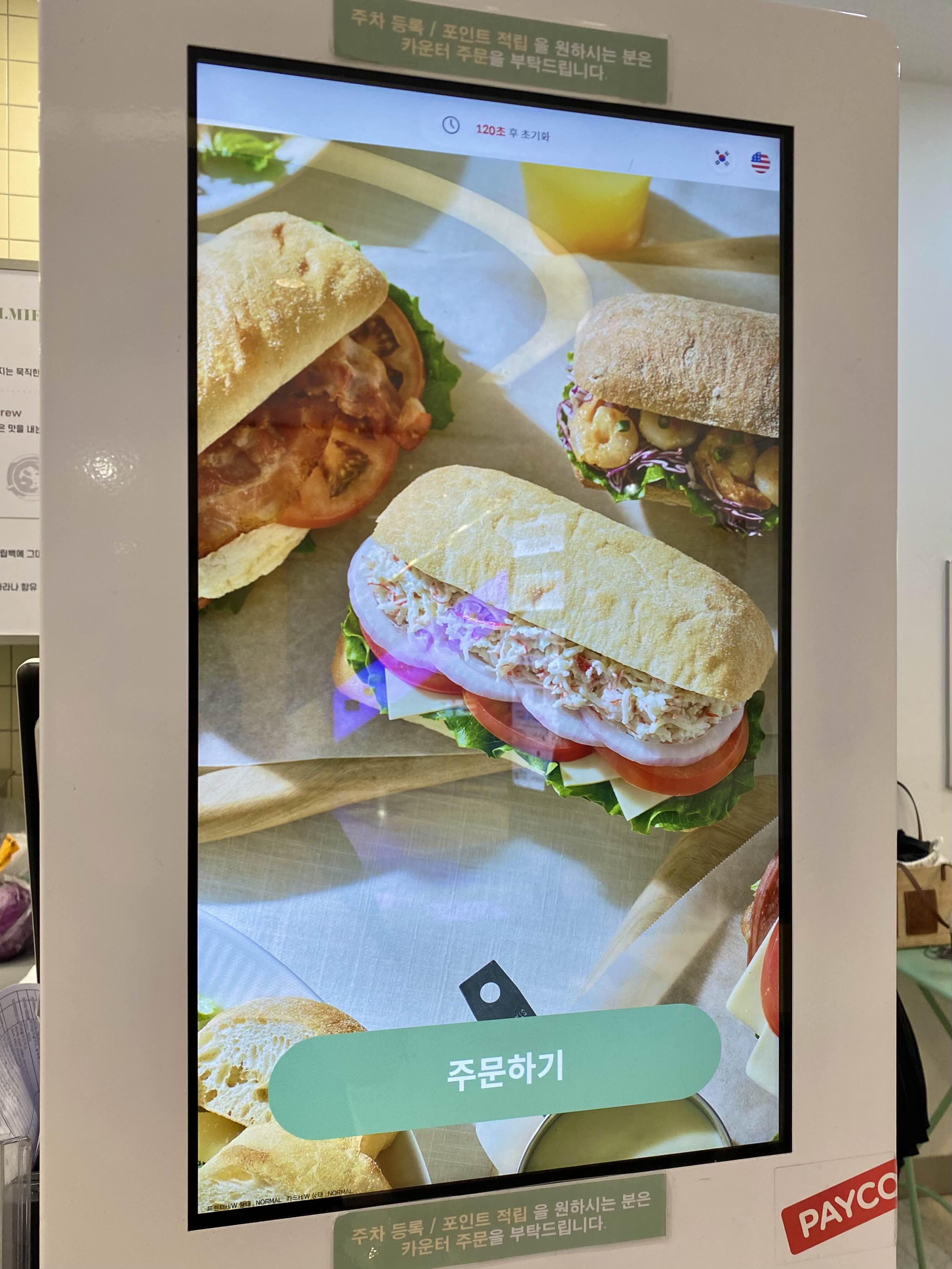 주문은 카운터 우측에 놓인 키오스크로 하면된다!