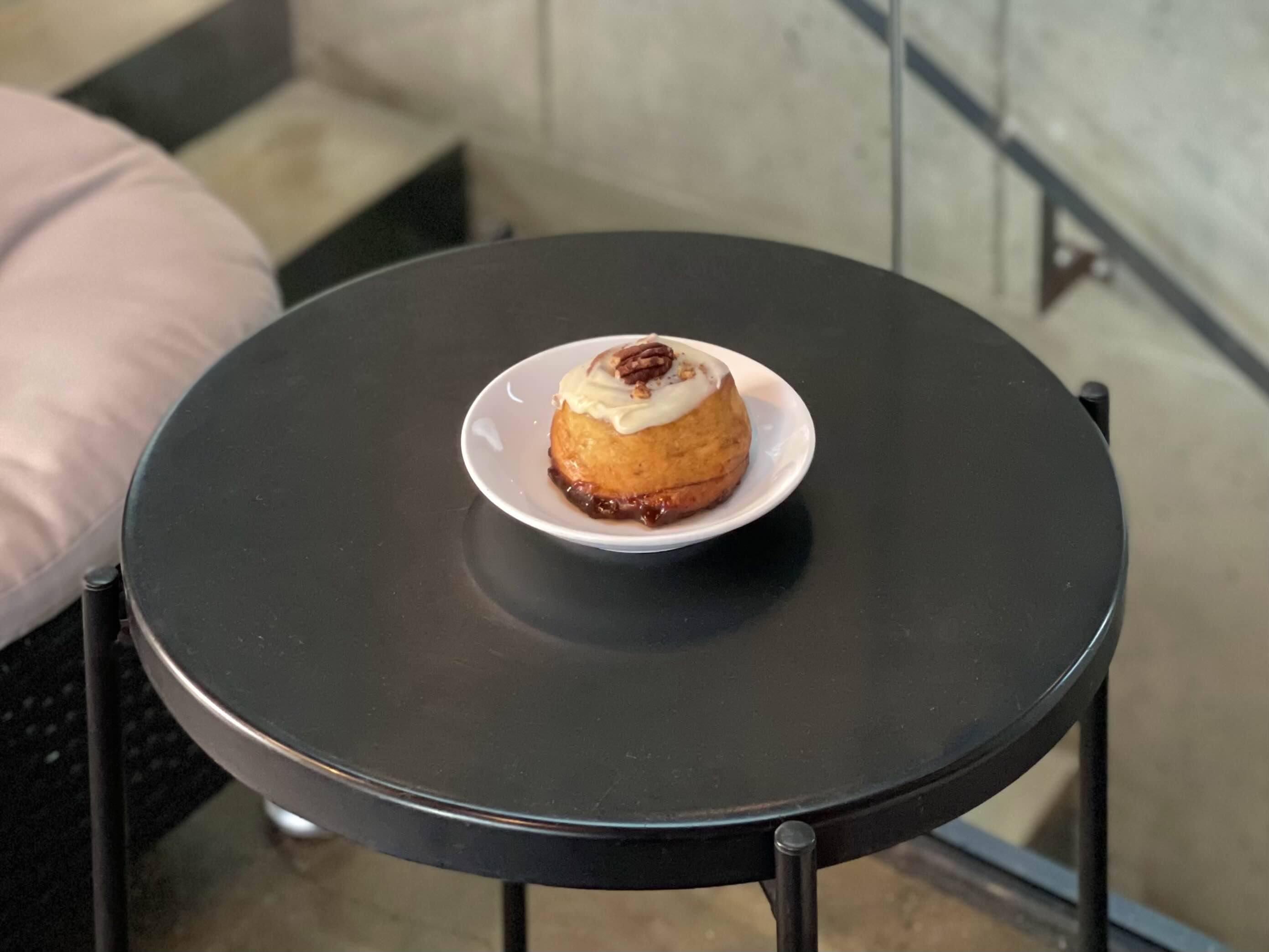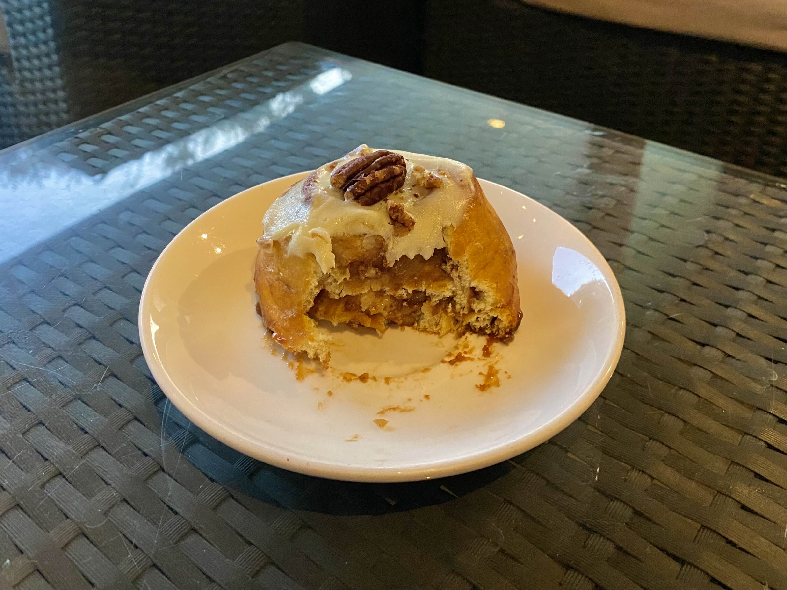 가장 위에는 달큰한 피칸이 올라가있고 롤 위에는