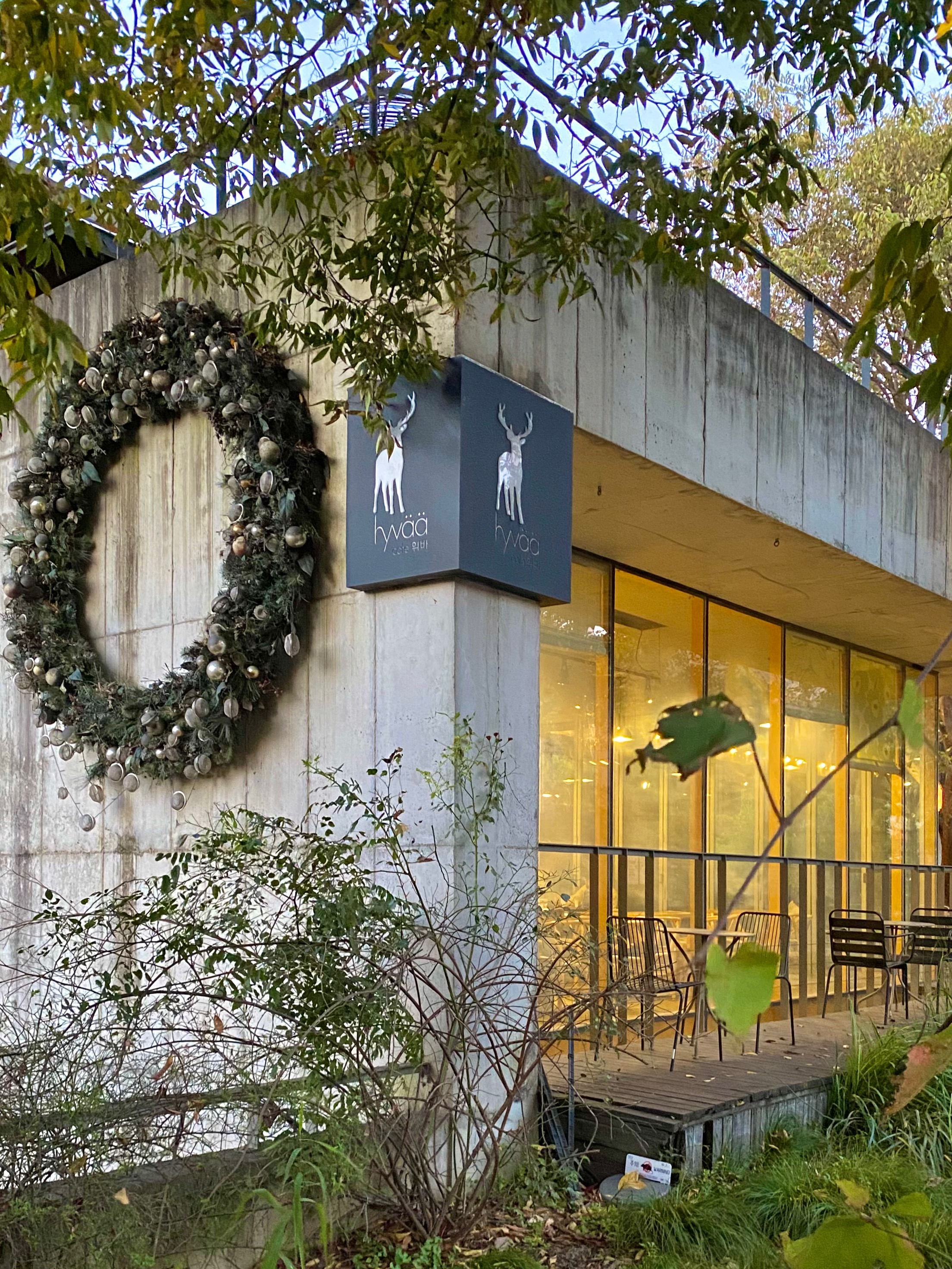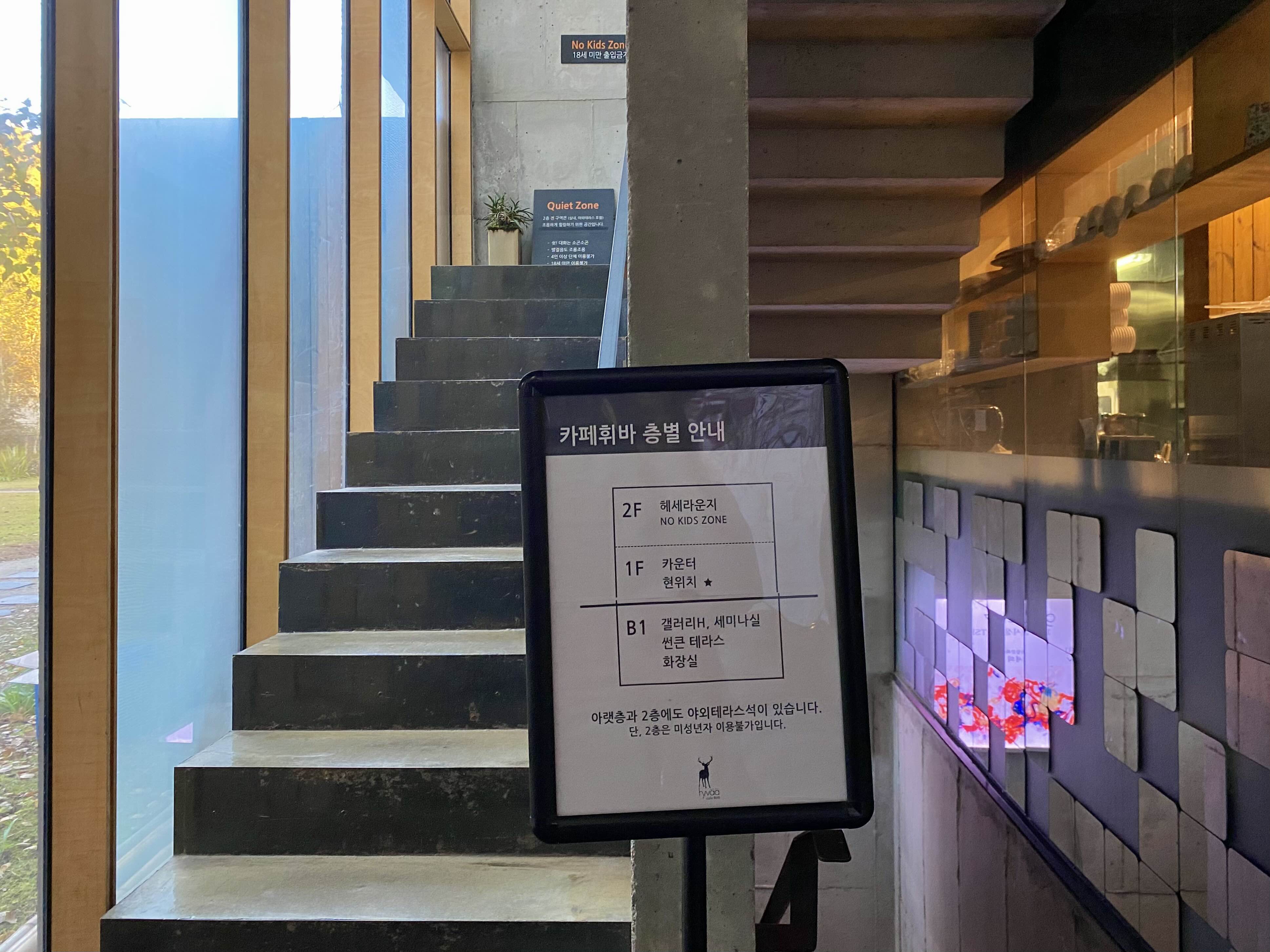 메인 입구에서 놓여있던 표지판을 지나니 판석이 깔린 야외 정원이 나온다. 여기서 좌측은 ‘그릴 휘바’ 우측은 ‘카페 휘바’가 위치하고 있다.