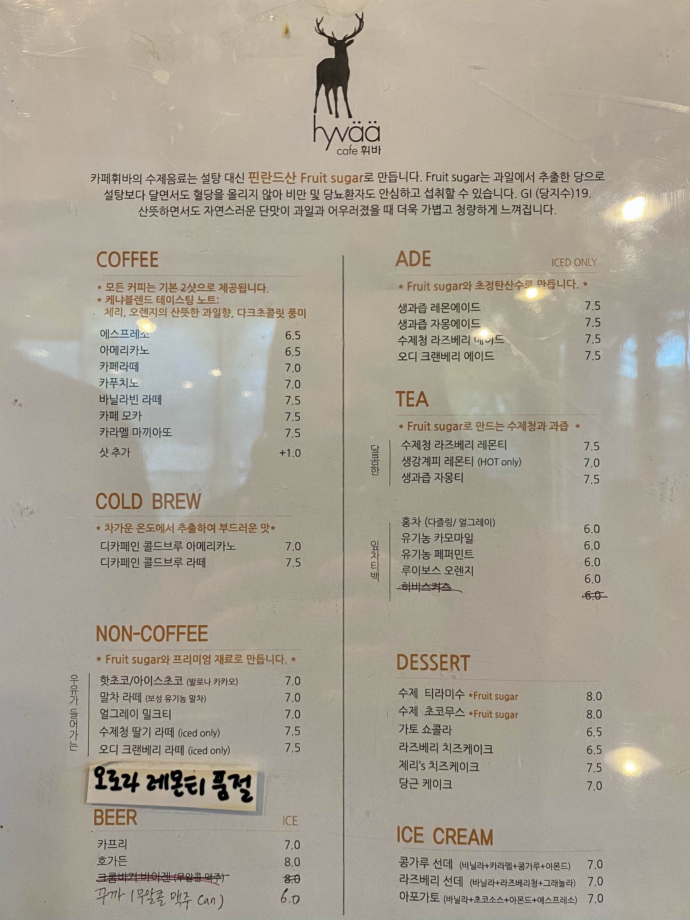 ‘카페 휘바’ 메뉴판.