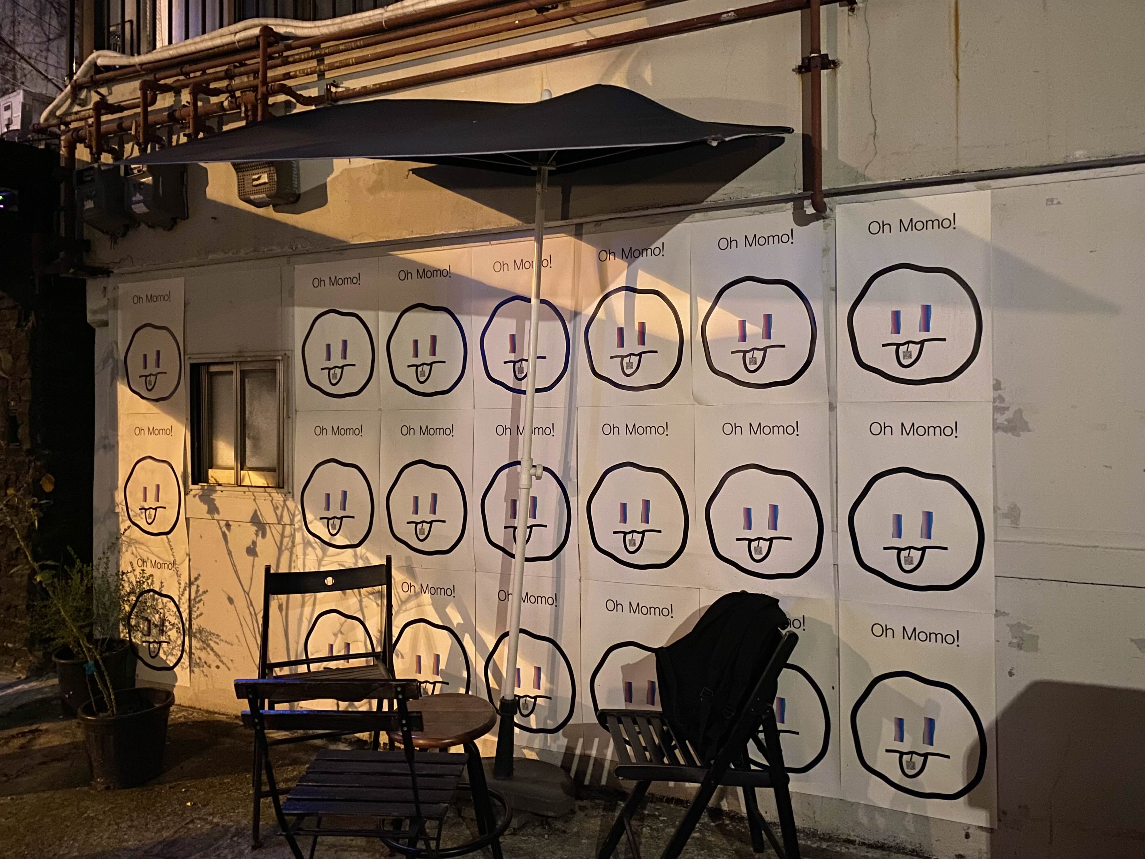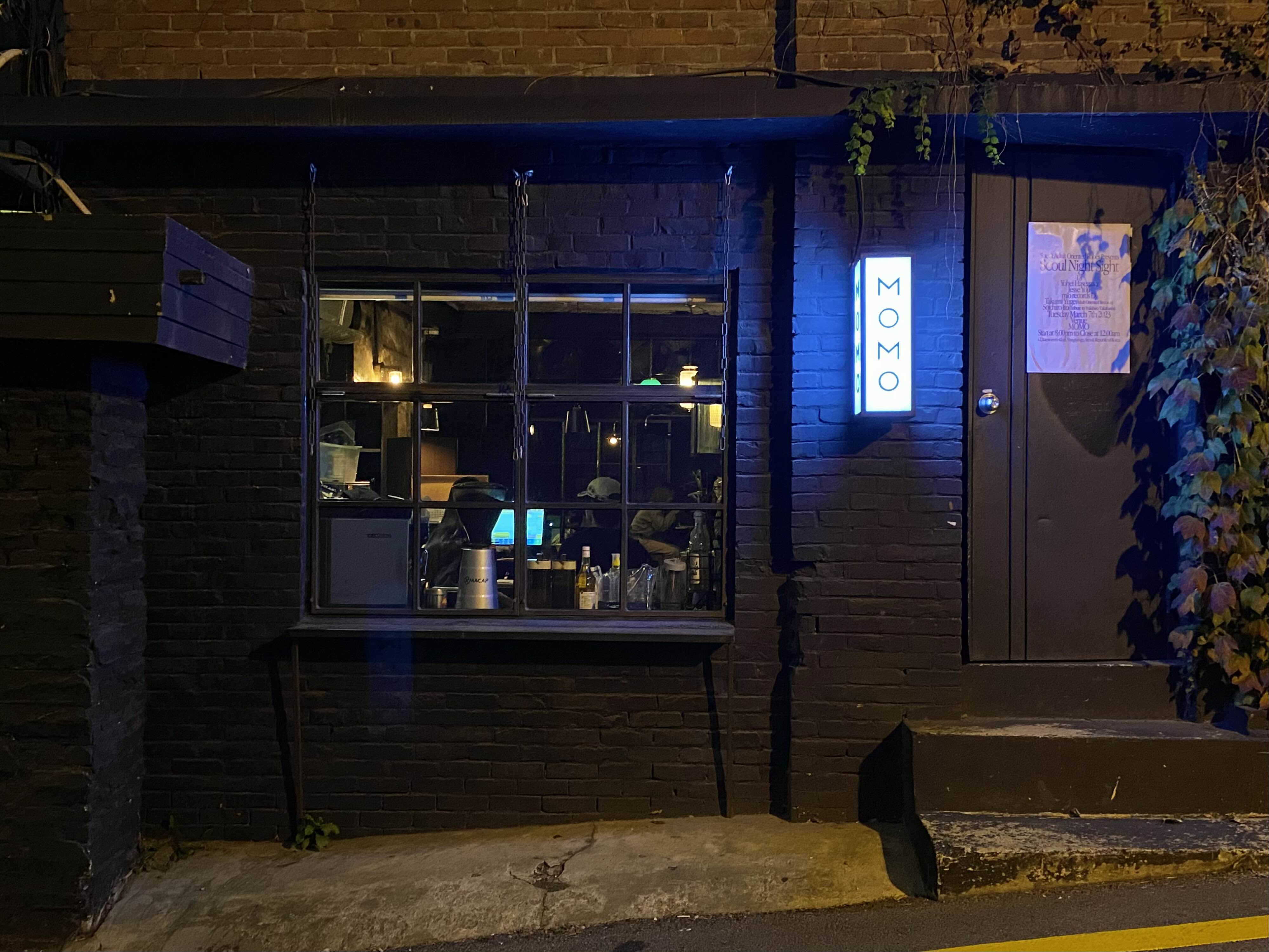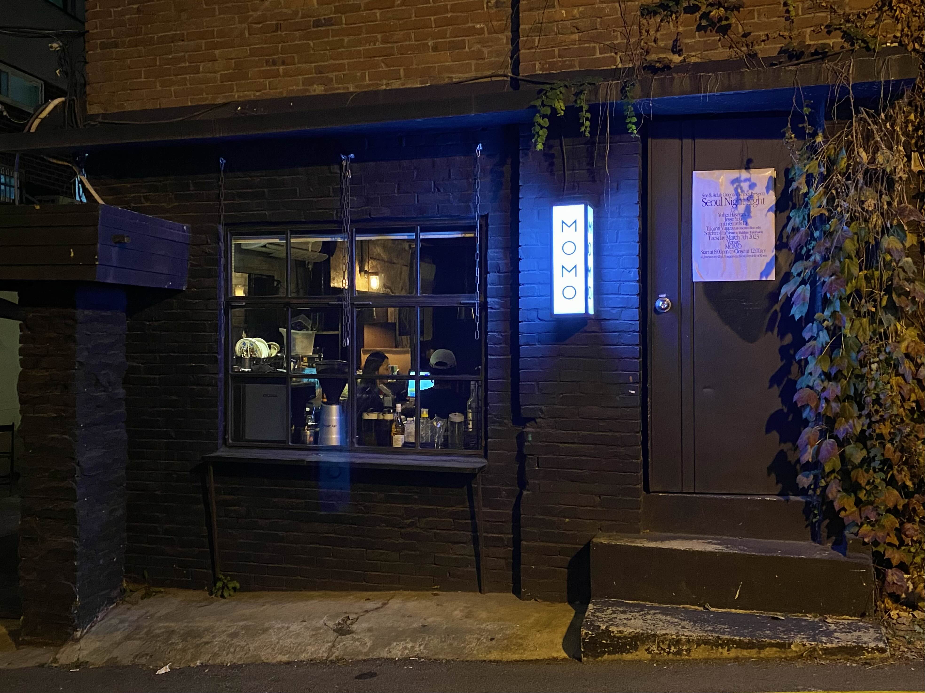‘모모’ 입구.밤에 찍었더니 조명 빛번짐이 계속 나온다ㅠ