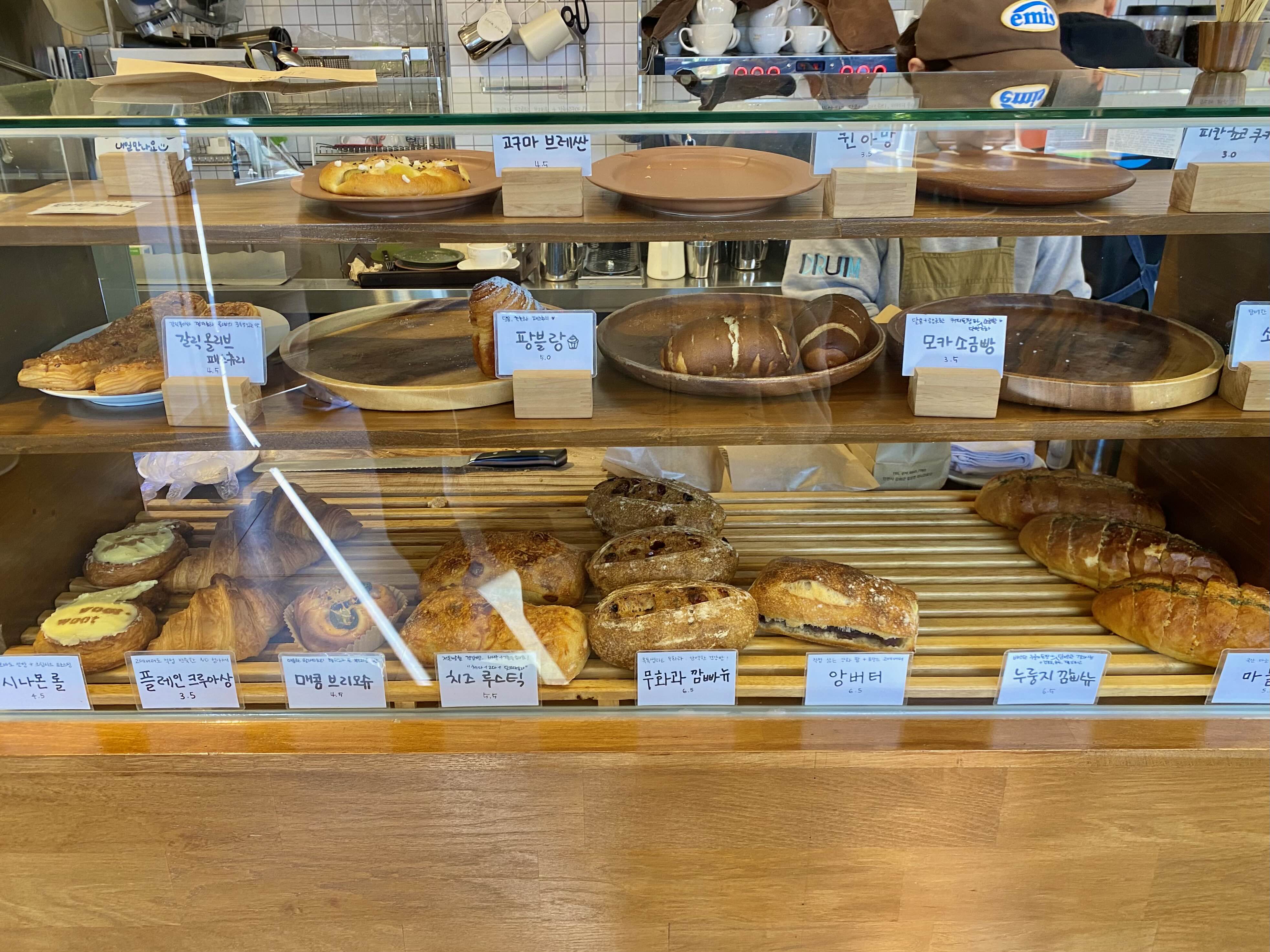 생각보다 진열대 크기가 컸는데 그 안에는 페스츄리, 바게트, 건강빵 등 다양한 빵들이 판매되고 있다.