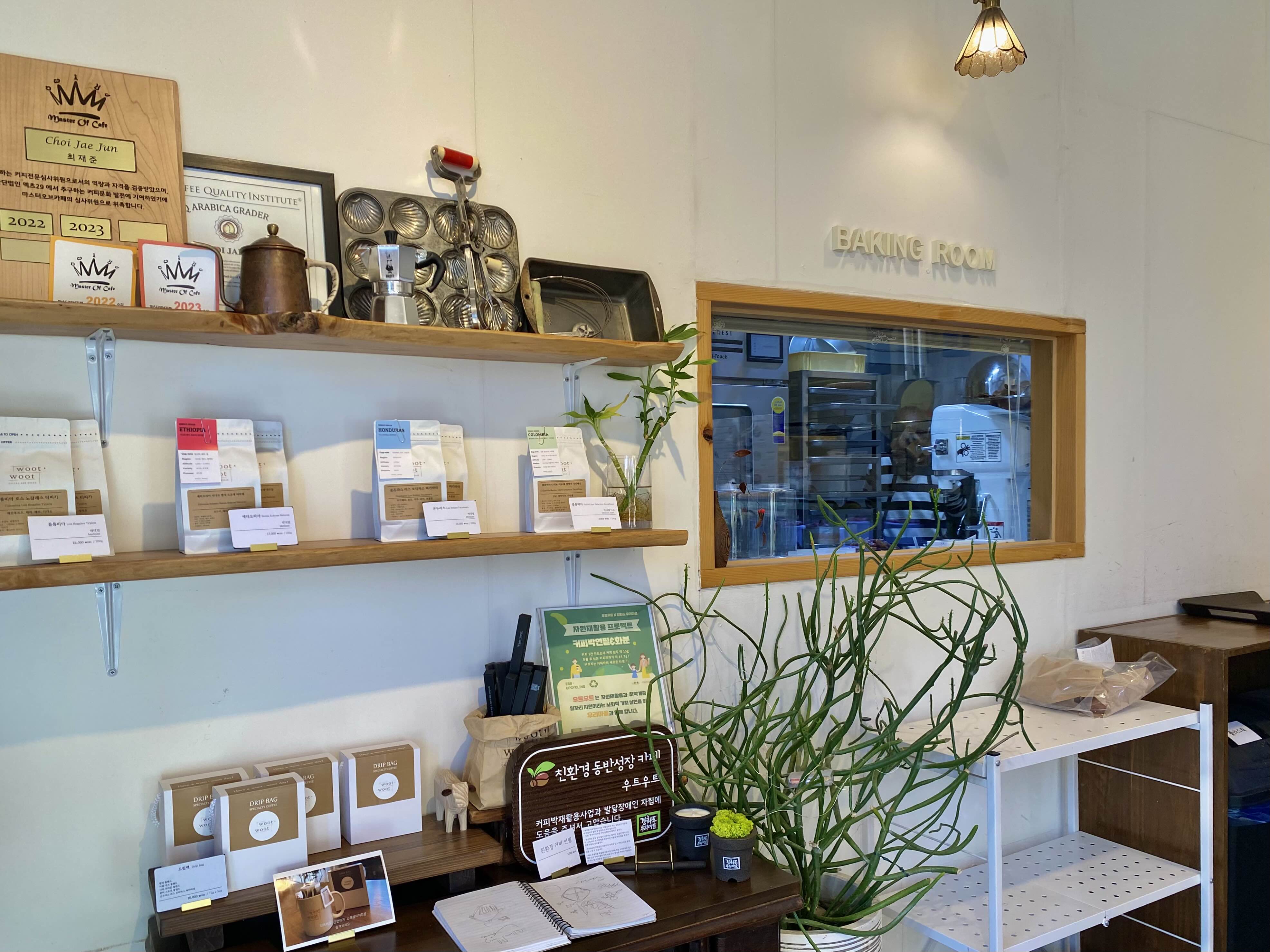 1층에는 카운터와 베이킹룸이 있어 좌석은 창가자리 뿐이고