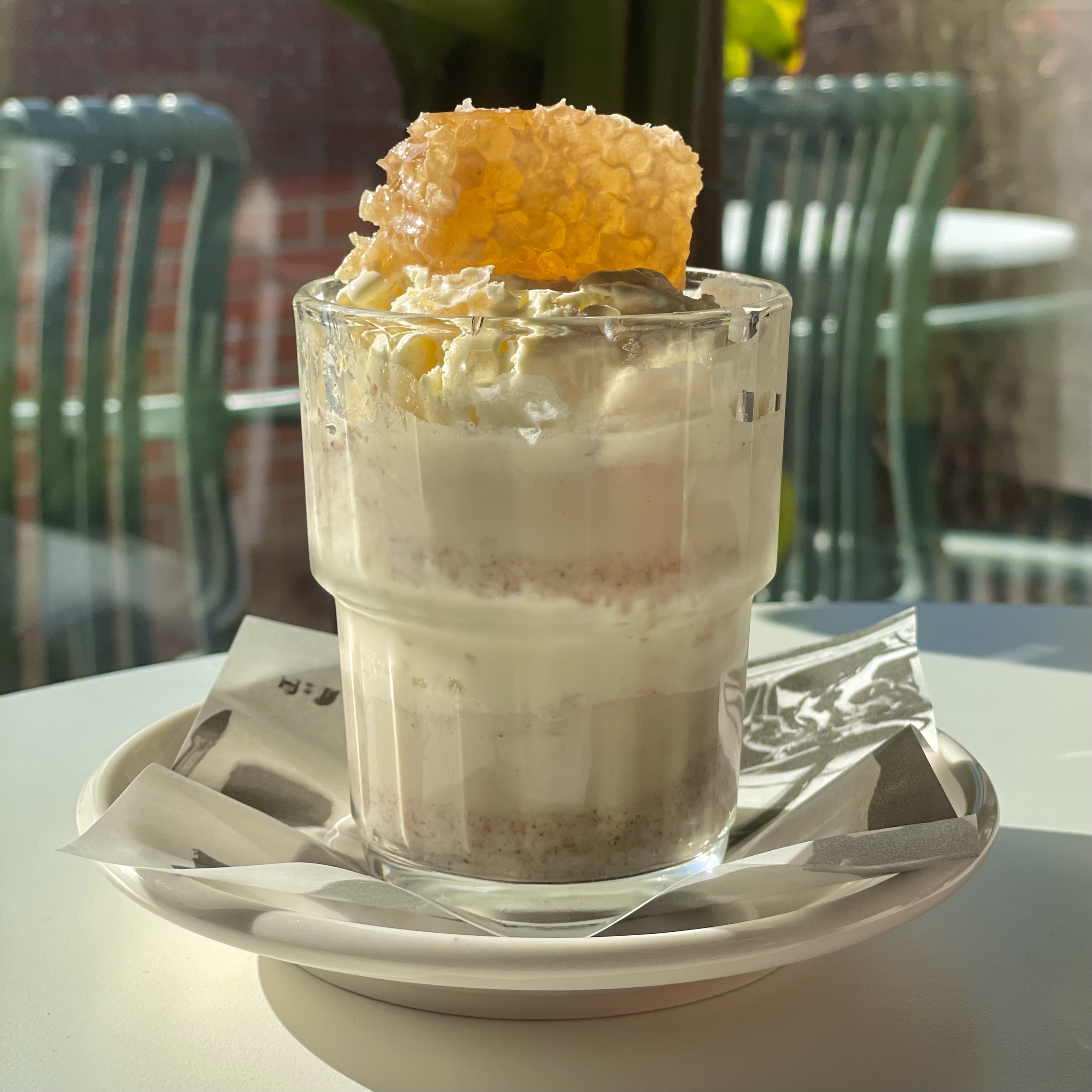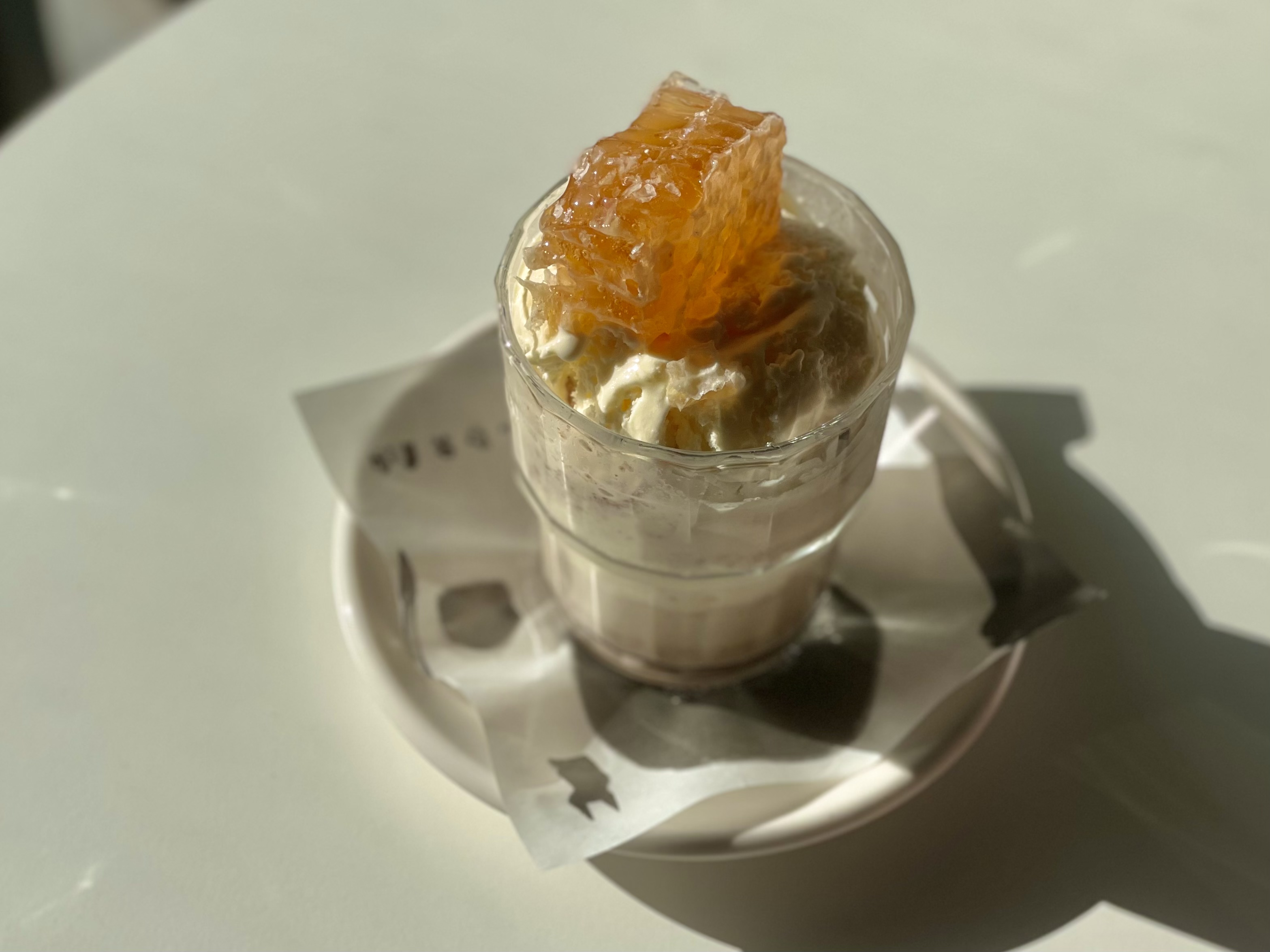 가장 위에는 벌꿀집과 바닐라맛 아이스크림이