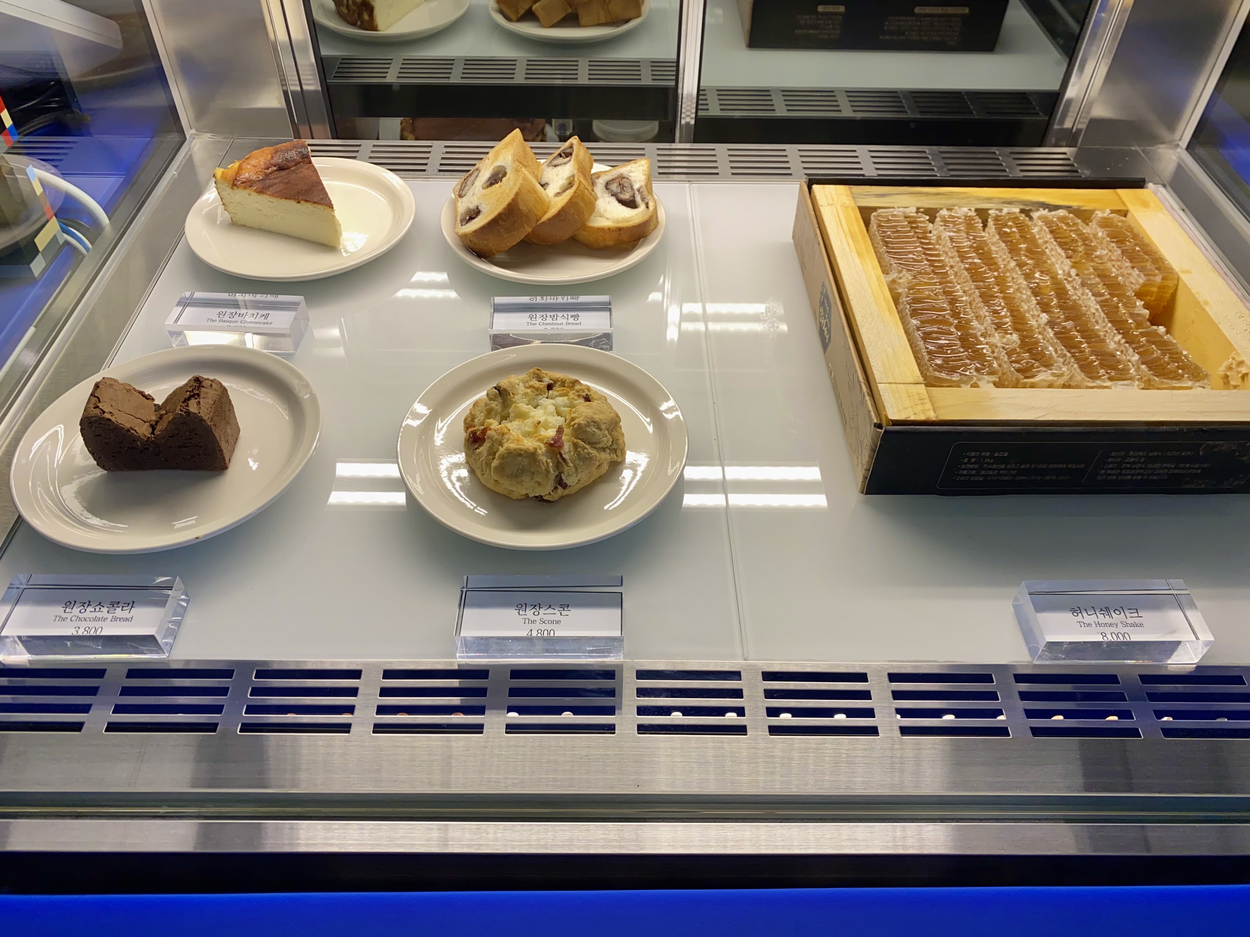 냉장 쇼케이스에는 총 4가지의 디저트가 진열되어 있다.