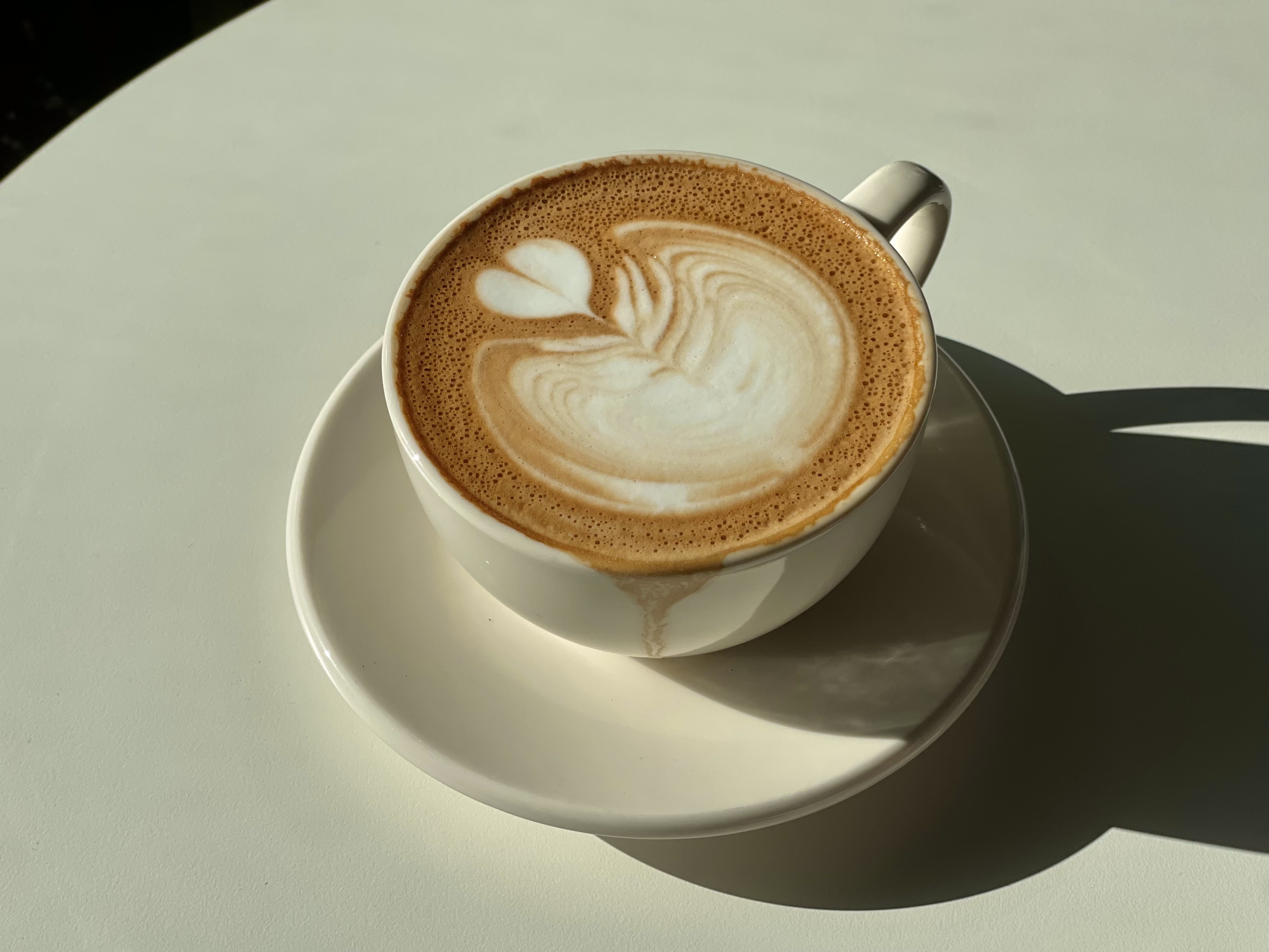 오목하고 둥근 커피잔에 따뜻한 '카페라떼'를