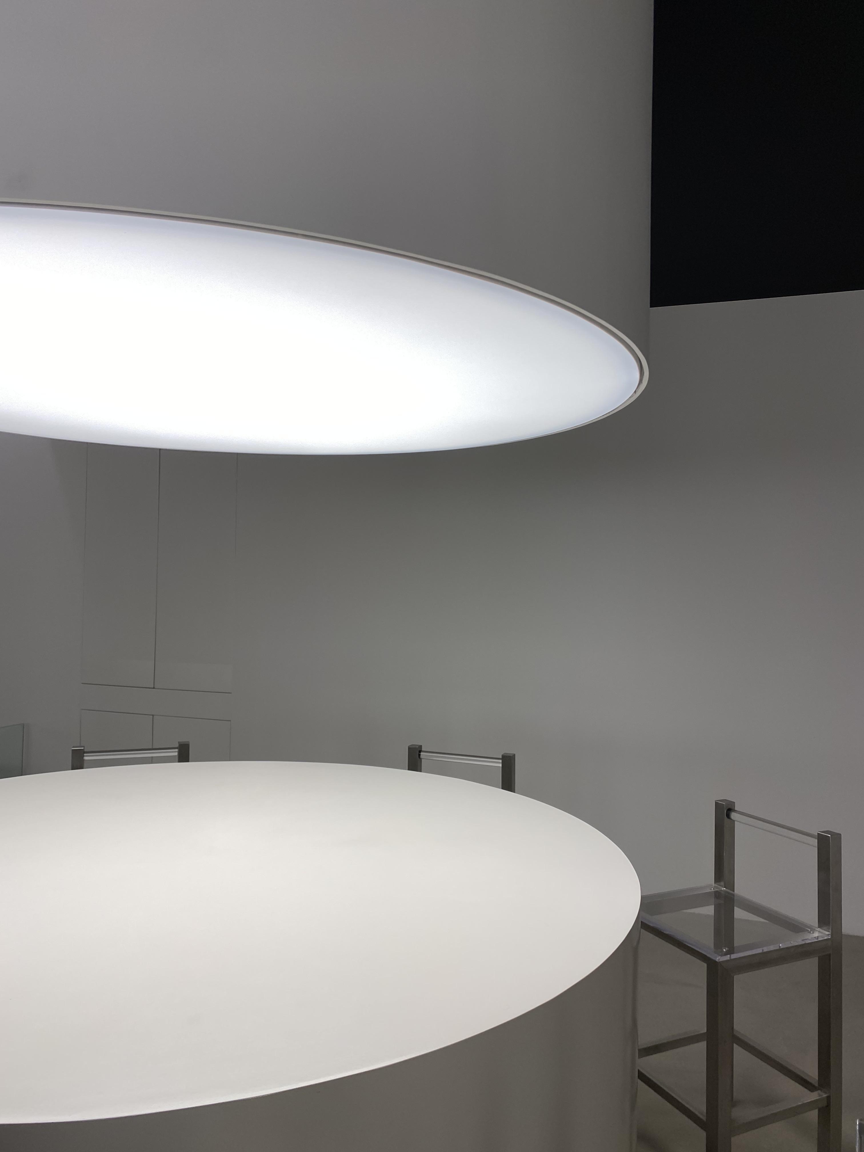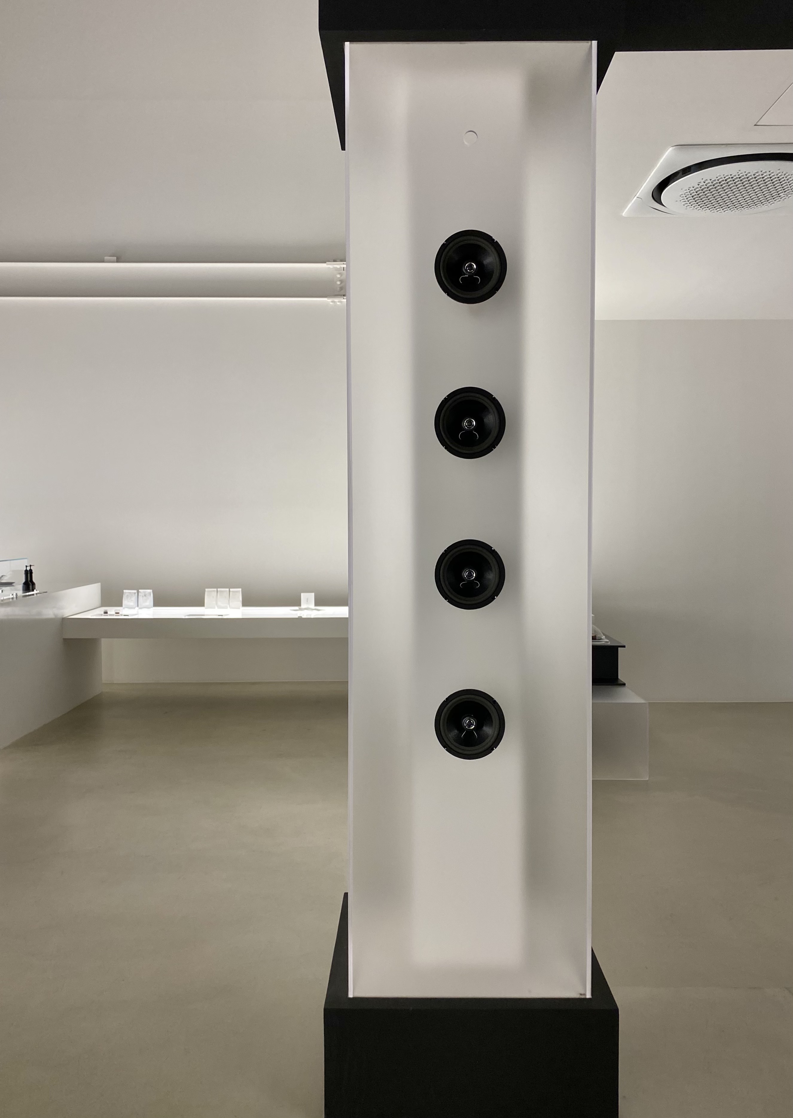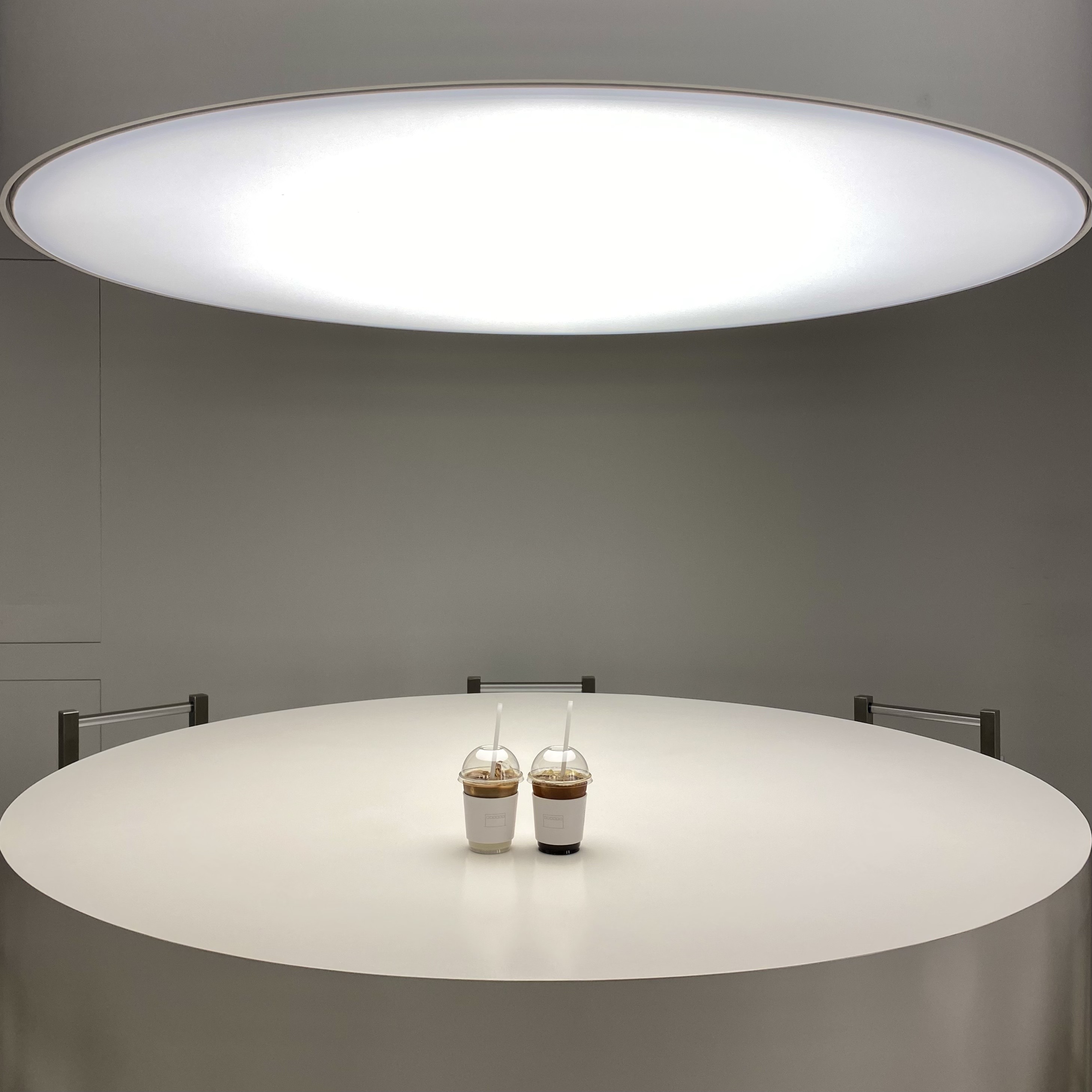 원기둥모양의 조명과 테이블이 놓여져있는데