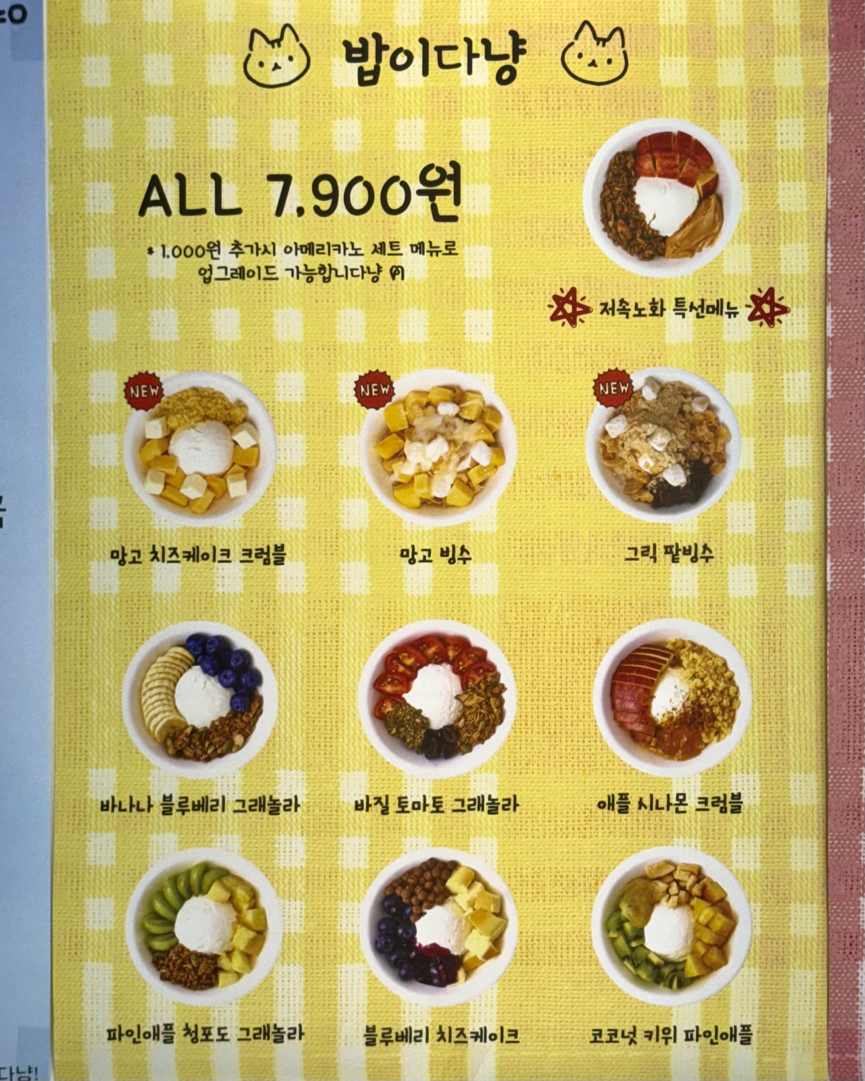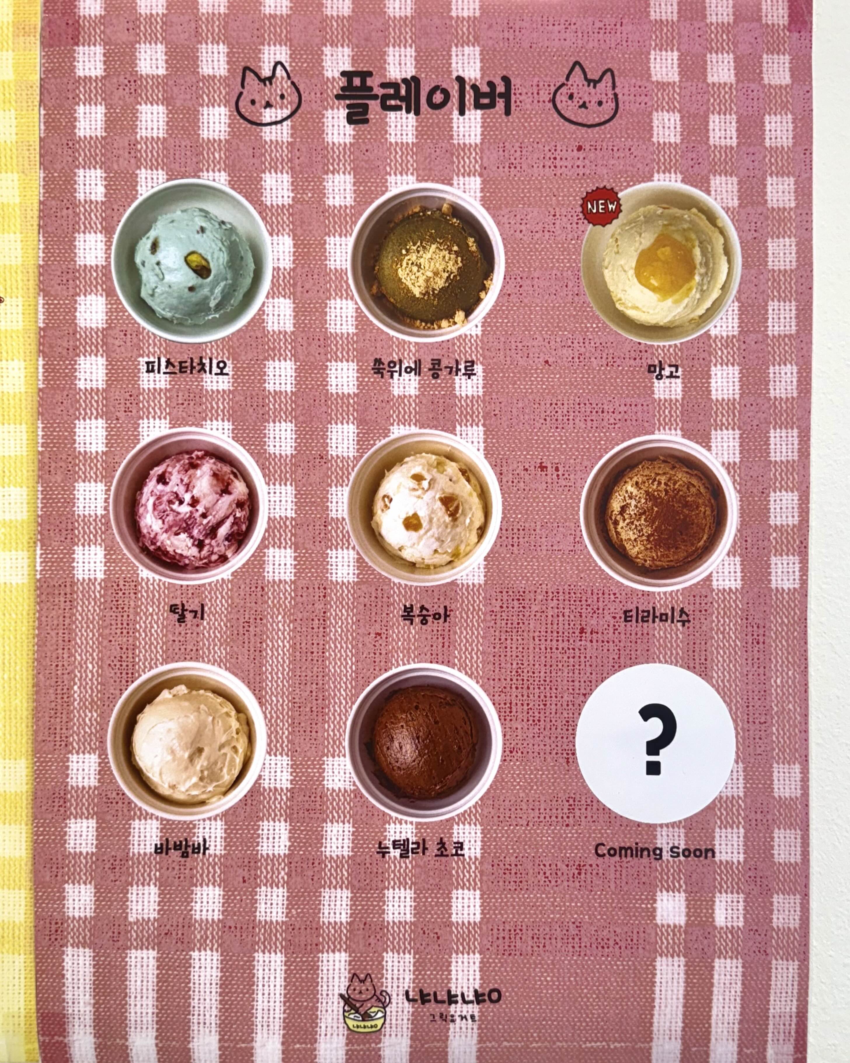 ‘냐냐냥 그릭요거트 메뉴인데,