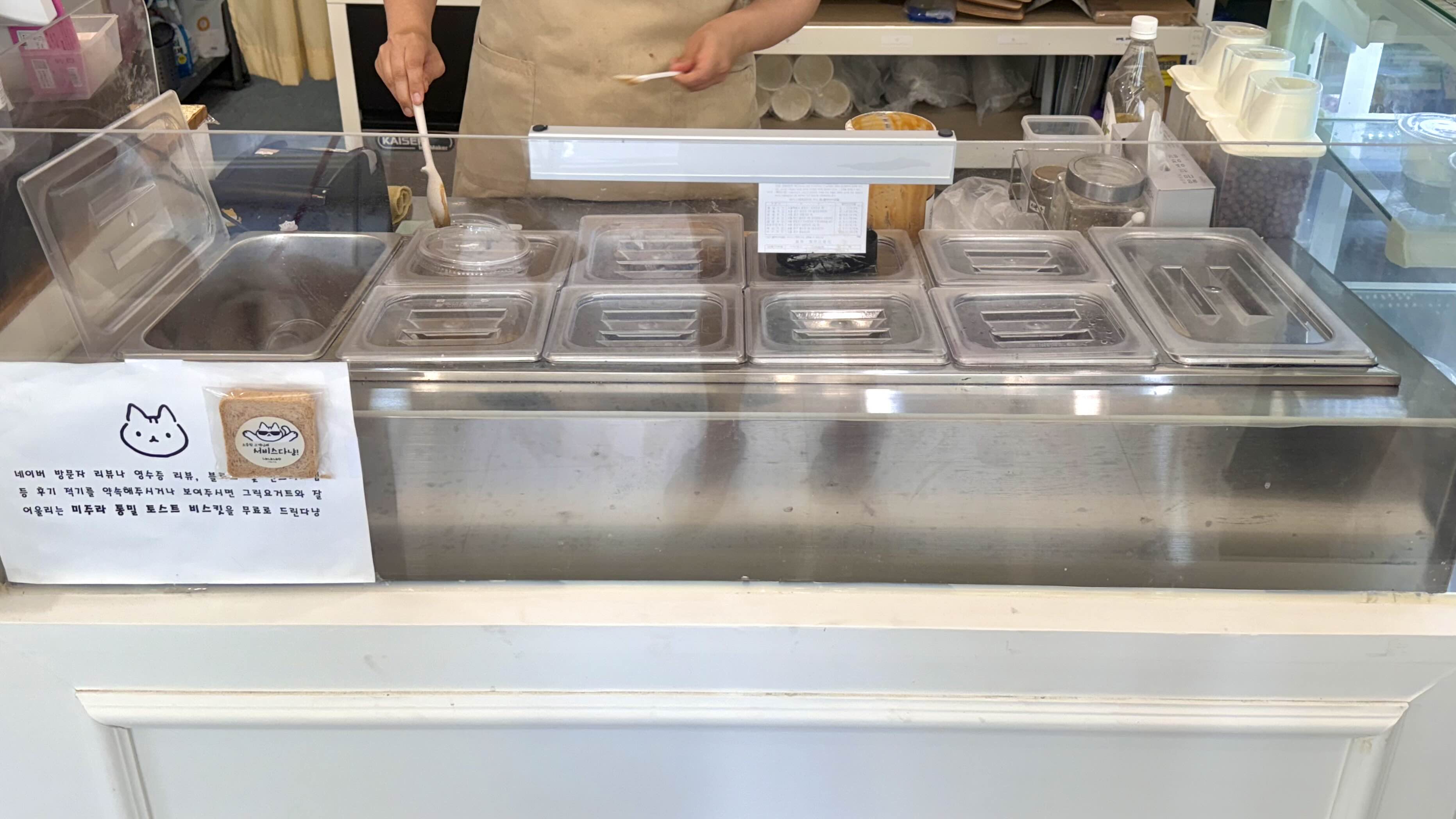 주문을 마치고 영수증을 찍는데 사장님이 내가 리뷰를 작성하시는 줄 알고 ‘미주라 통밀토스트’를 주시려 했다..!