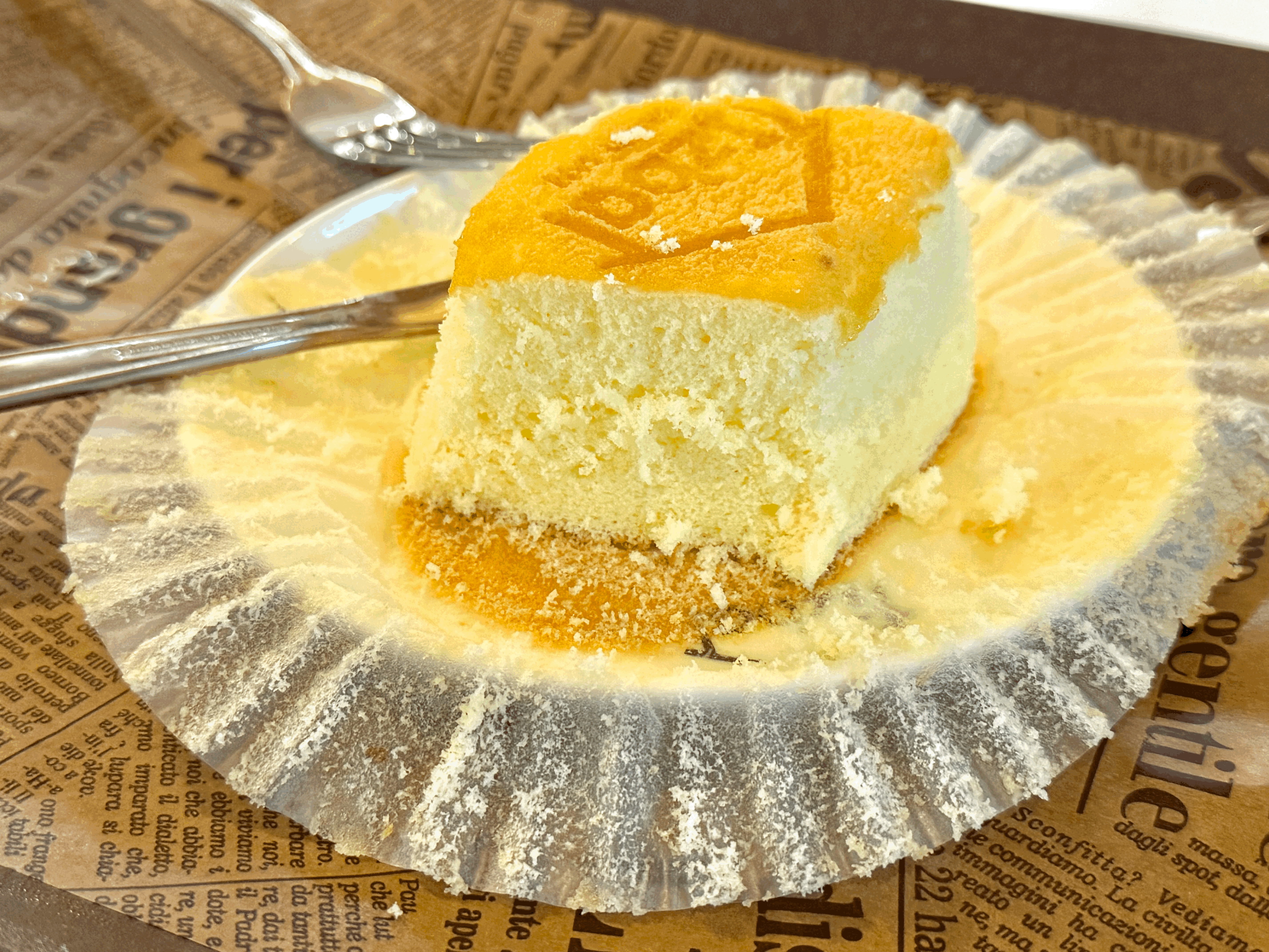 확실히 쌀로 만든 카스테라라 그런지 쫀쫀하게 잘리는 느낌이다. 촉촉하고 부드러운 것이 맛있었다!