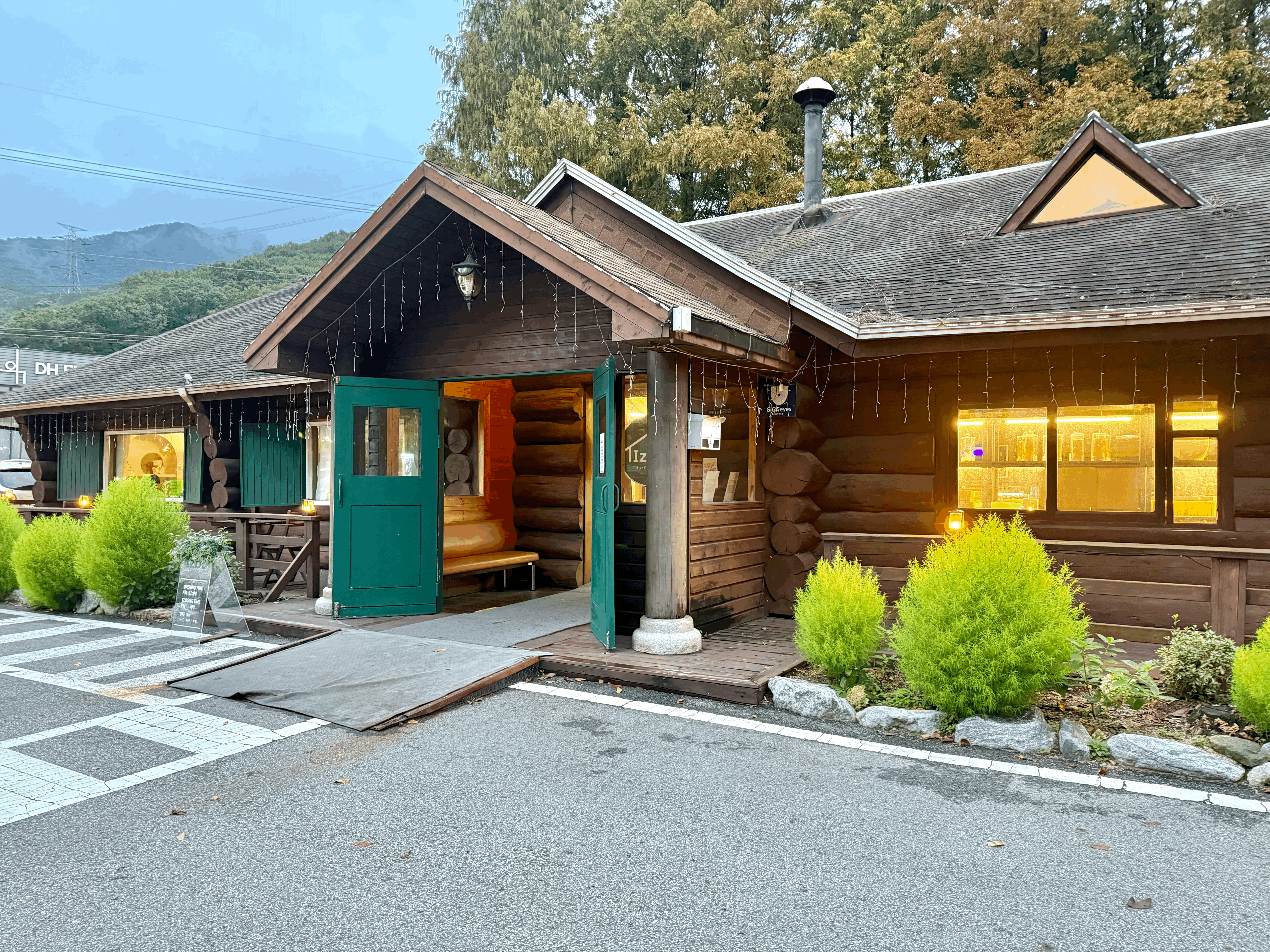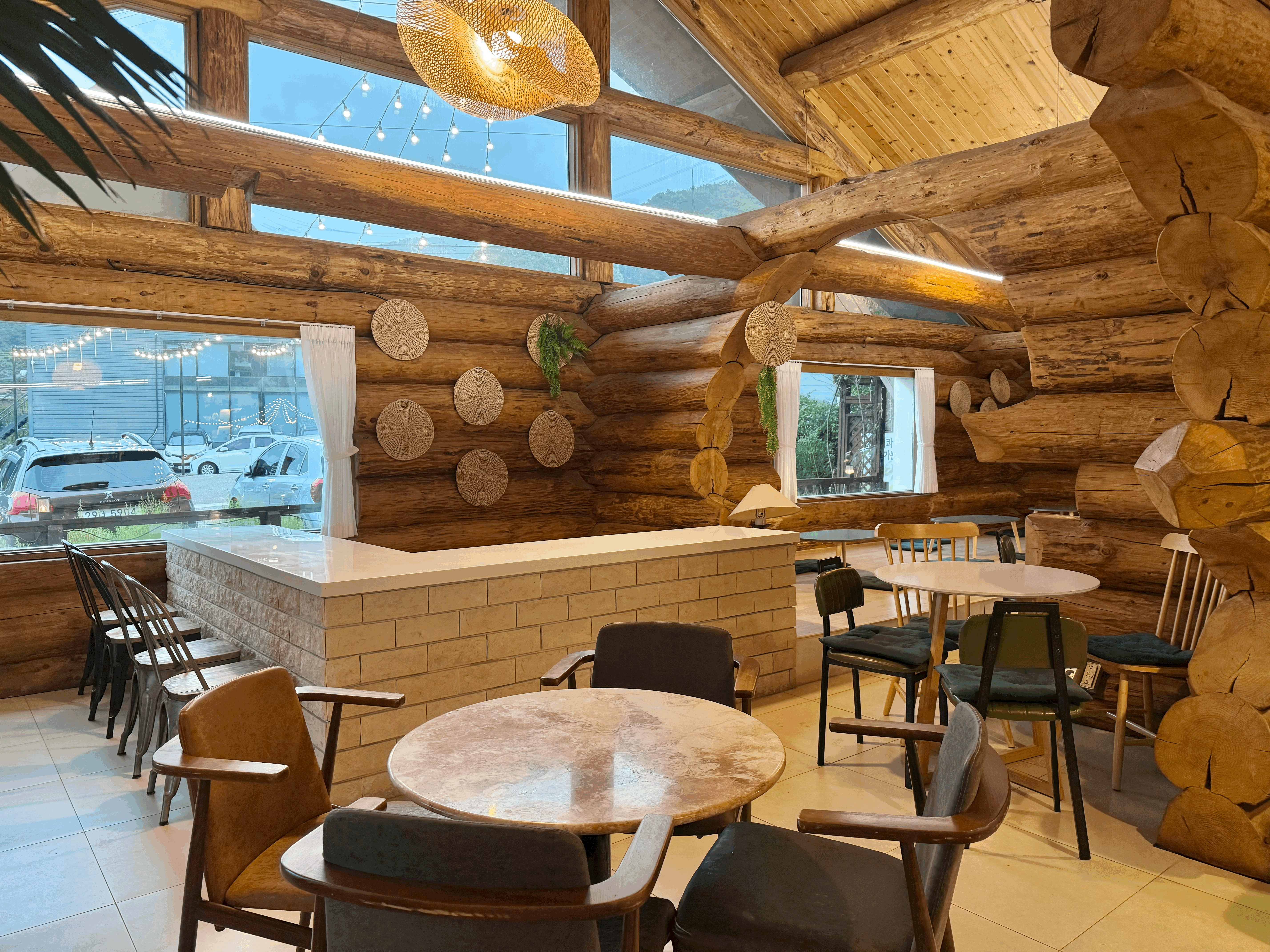 외관을 보시면 아시겠지만, 통나무로 지어진 카페이다!