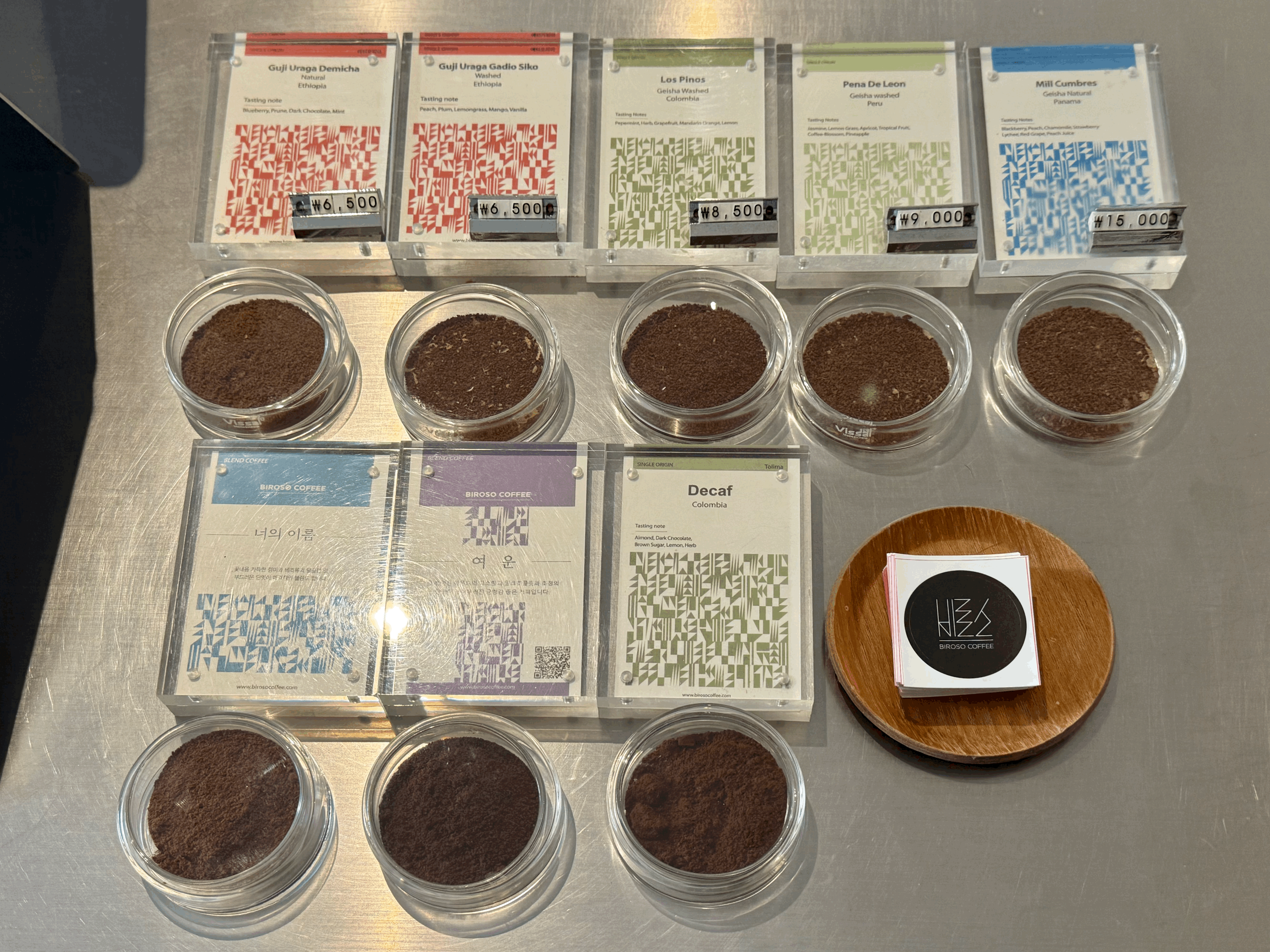 네 명 다 산미 없는 고소한 원두인 ‘여운’으로 골랐움!☕️