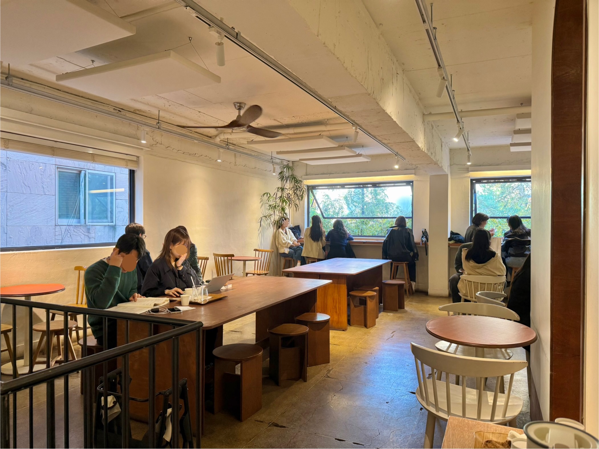 2층 공간은 2인 테이블, 6인 단체 테이블, 창가자리,