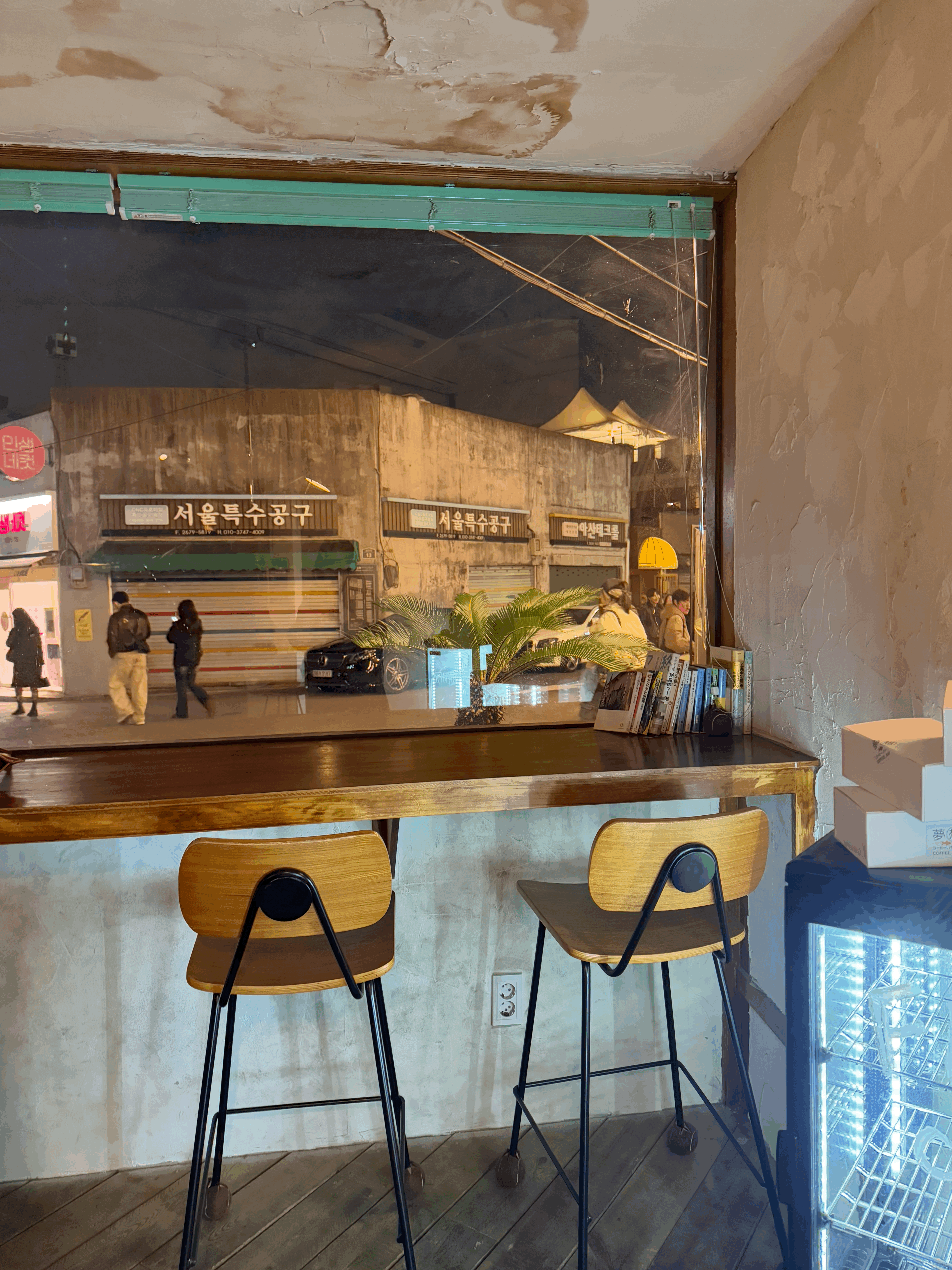 카운터 바로 앞에는 문래 골목 사거리가 훤히 보이는