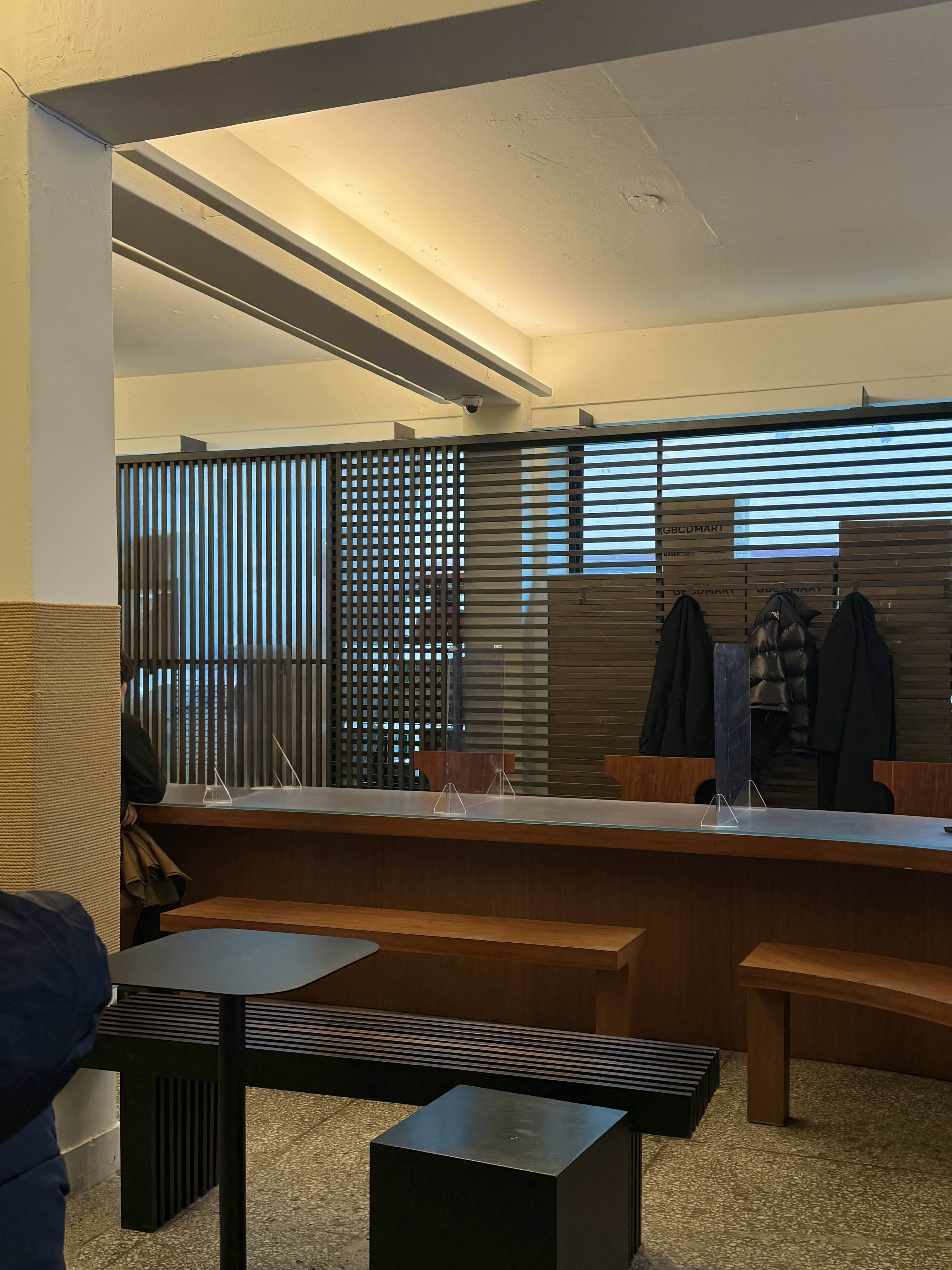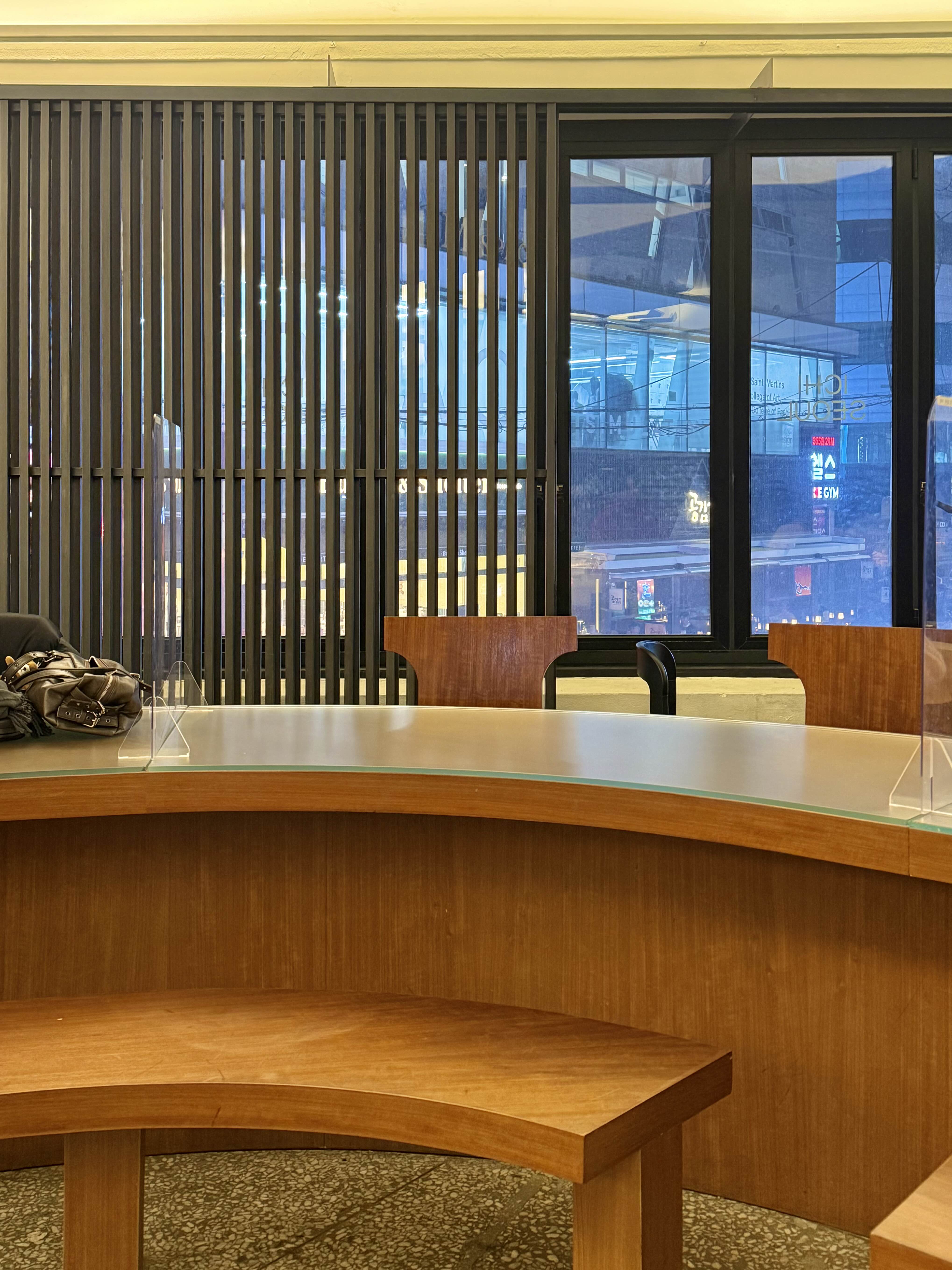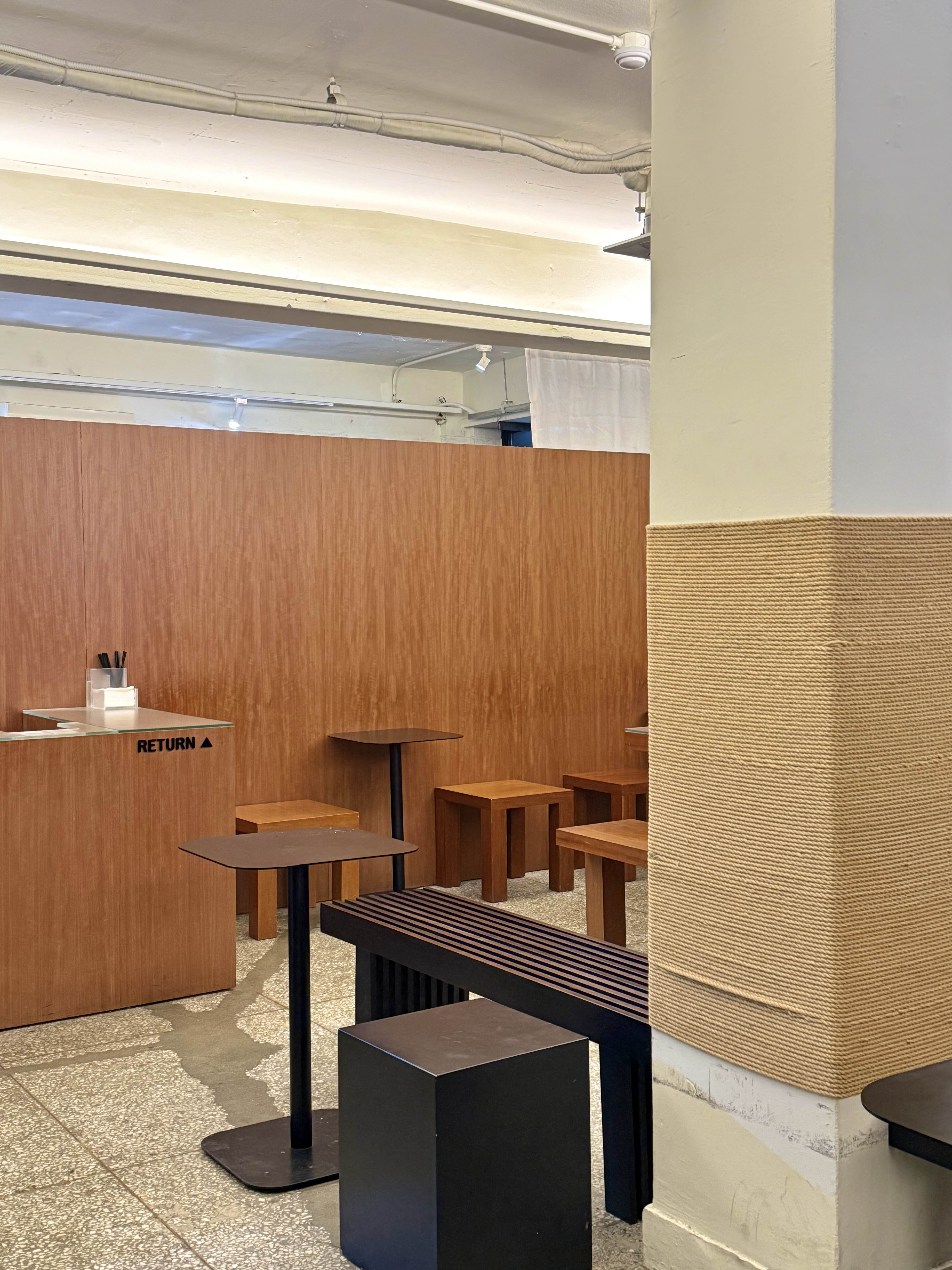 공간 가운데는 기둥을 중심으로 벤치형 자리 2개