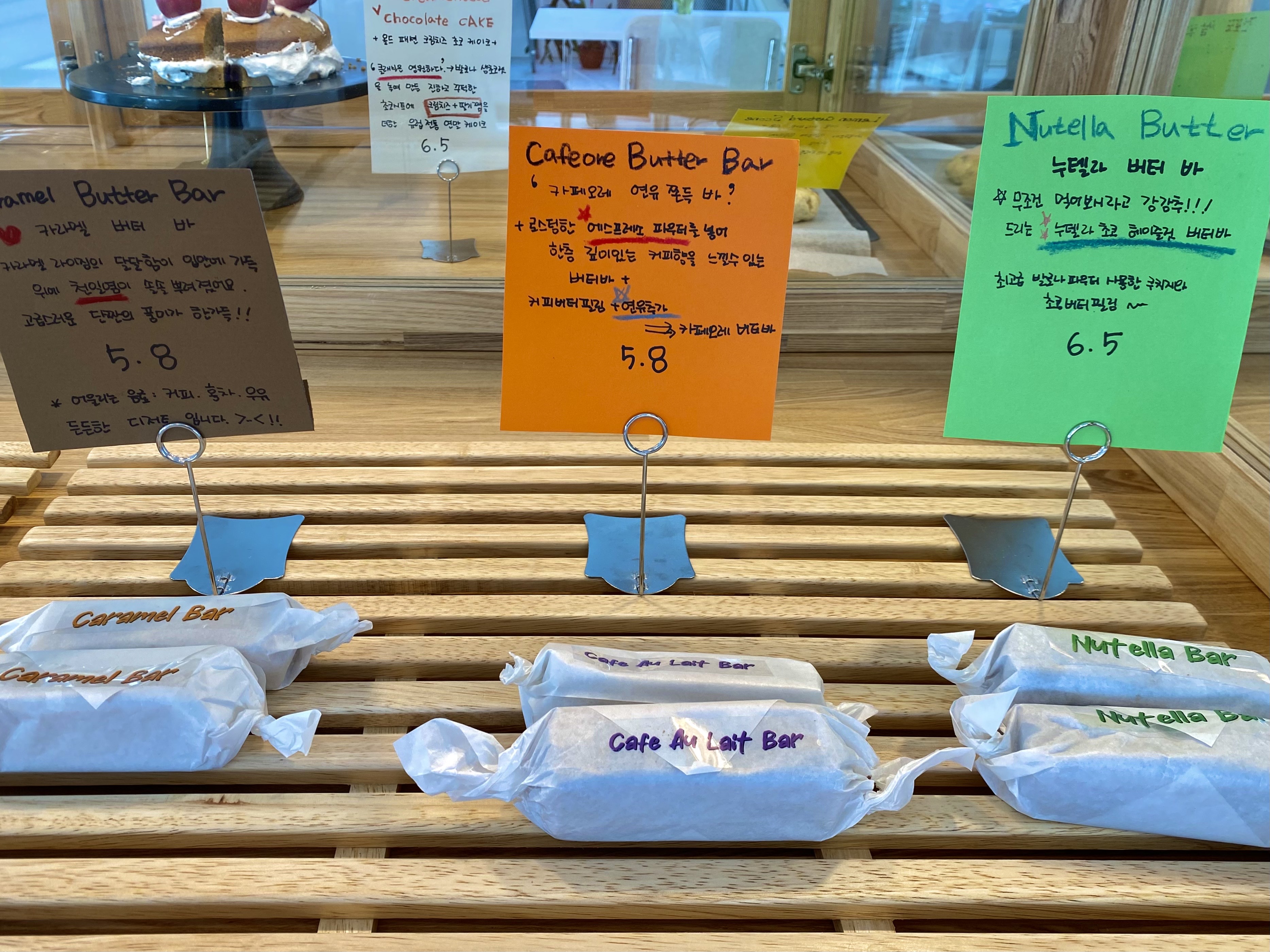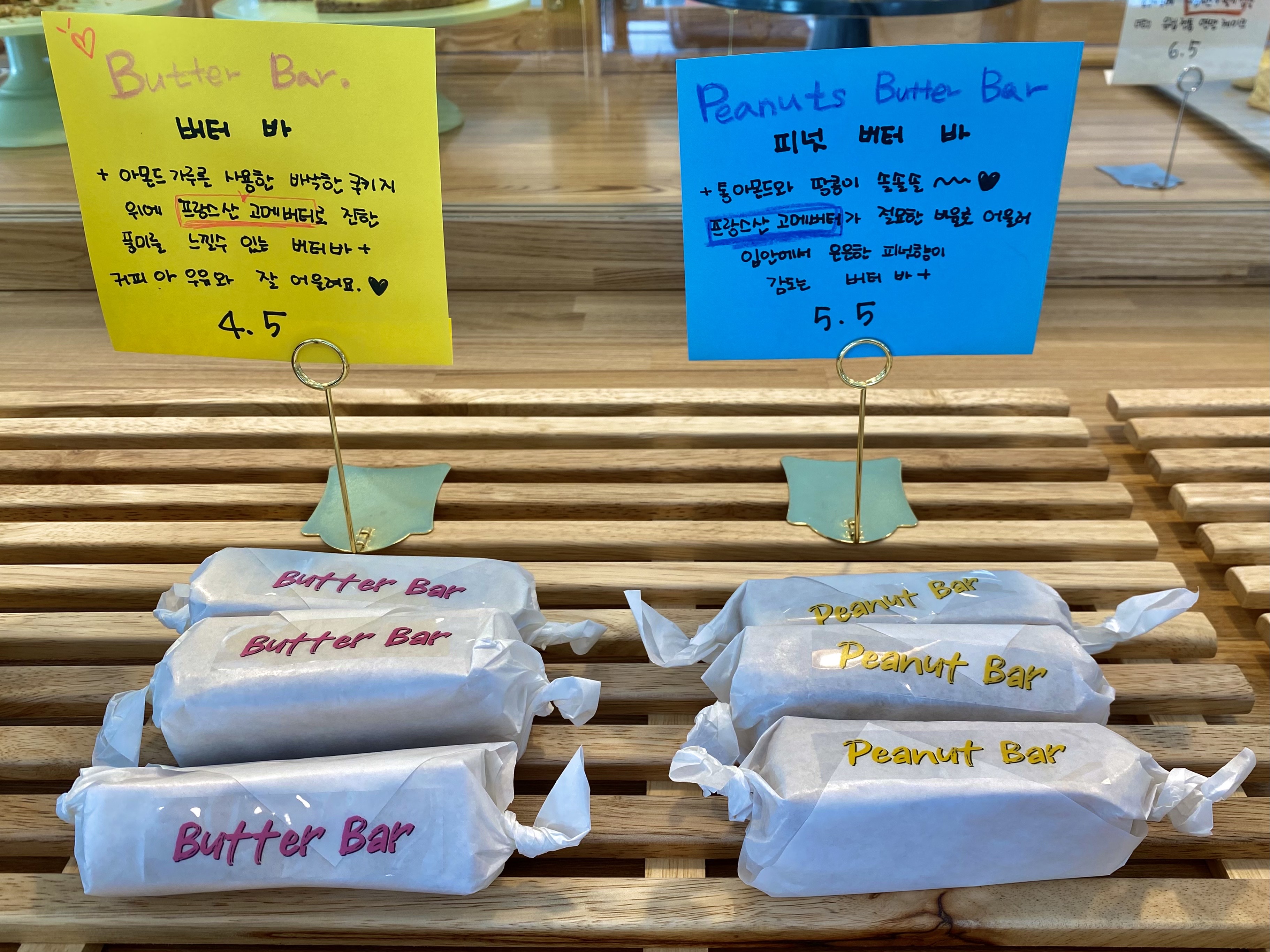 총 5종류의 버터바가 진열되있다.