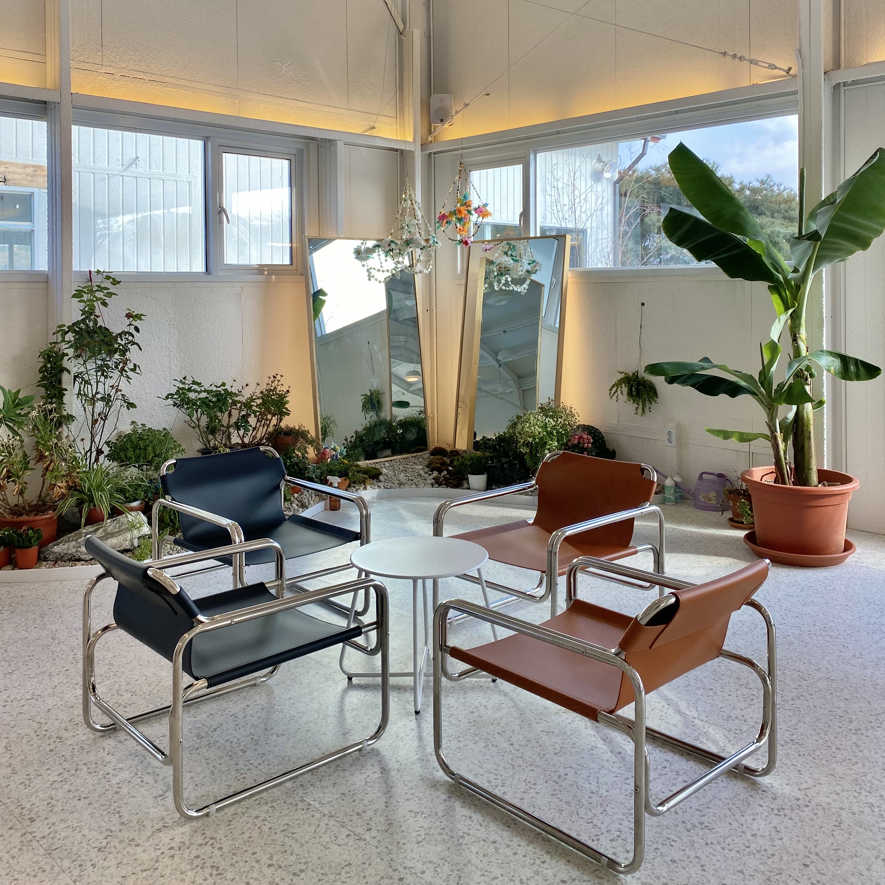 오른쪽 구석에는 식물들과 거울들이 놓여있어서