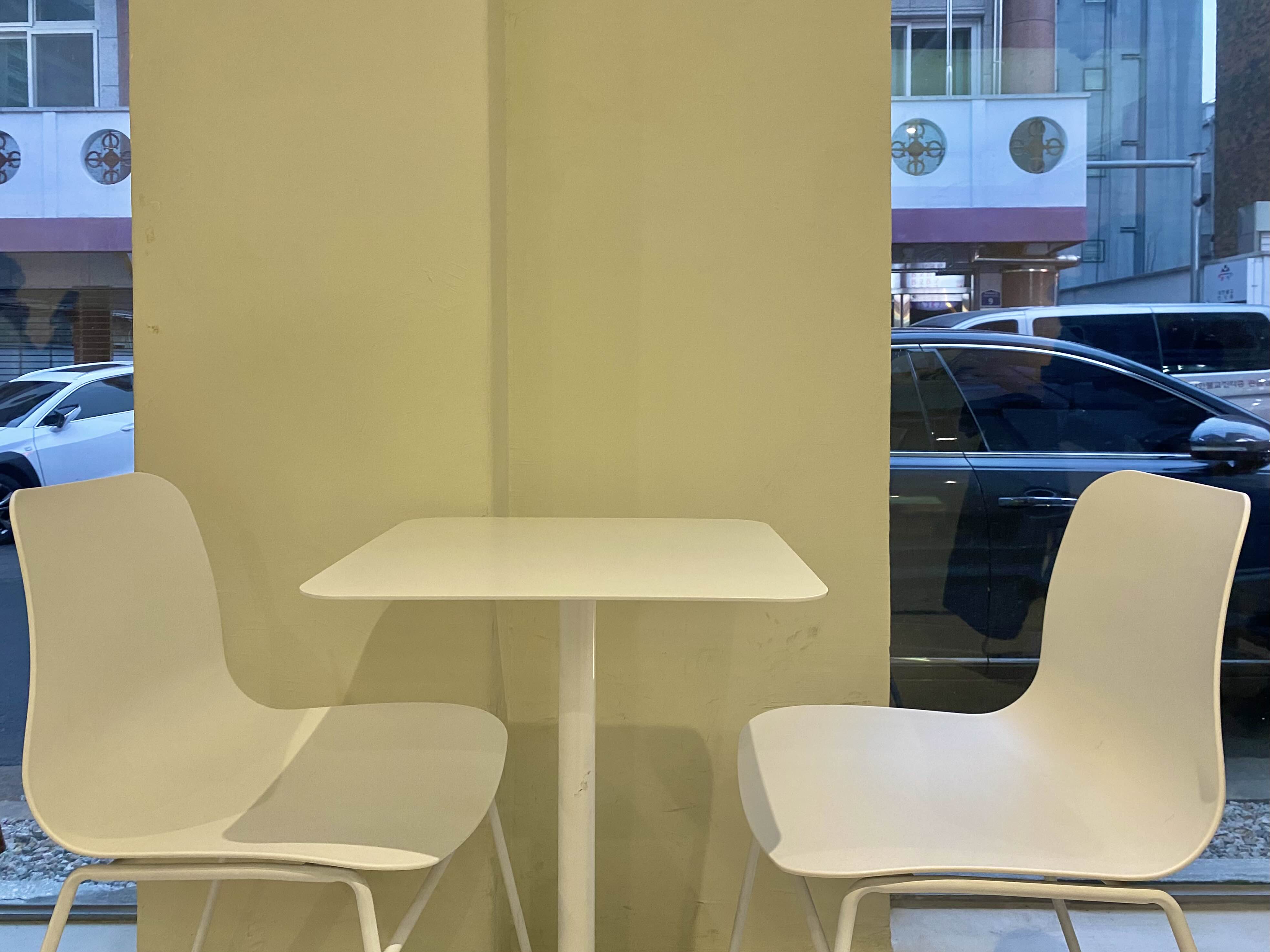 화이트로 심플한 느낌의 테이블과 의자.