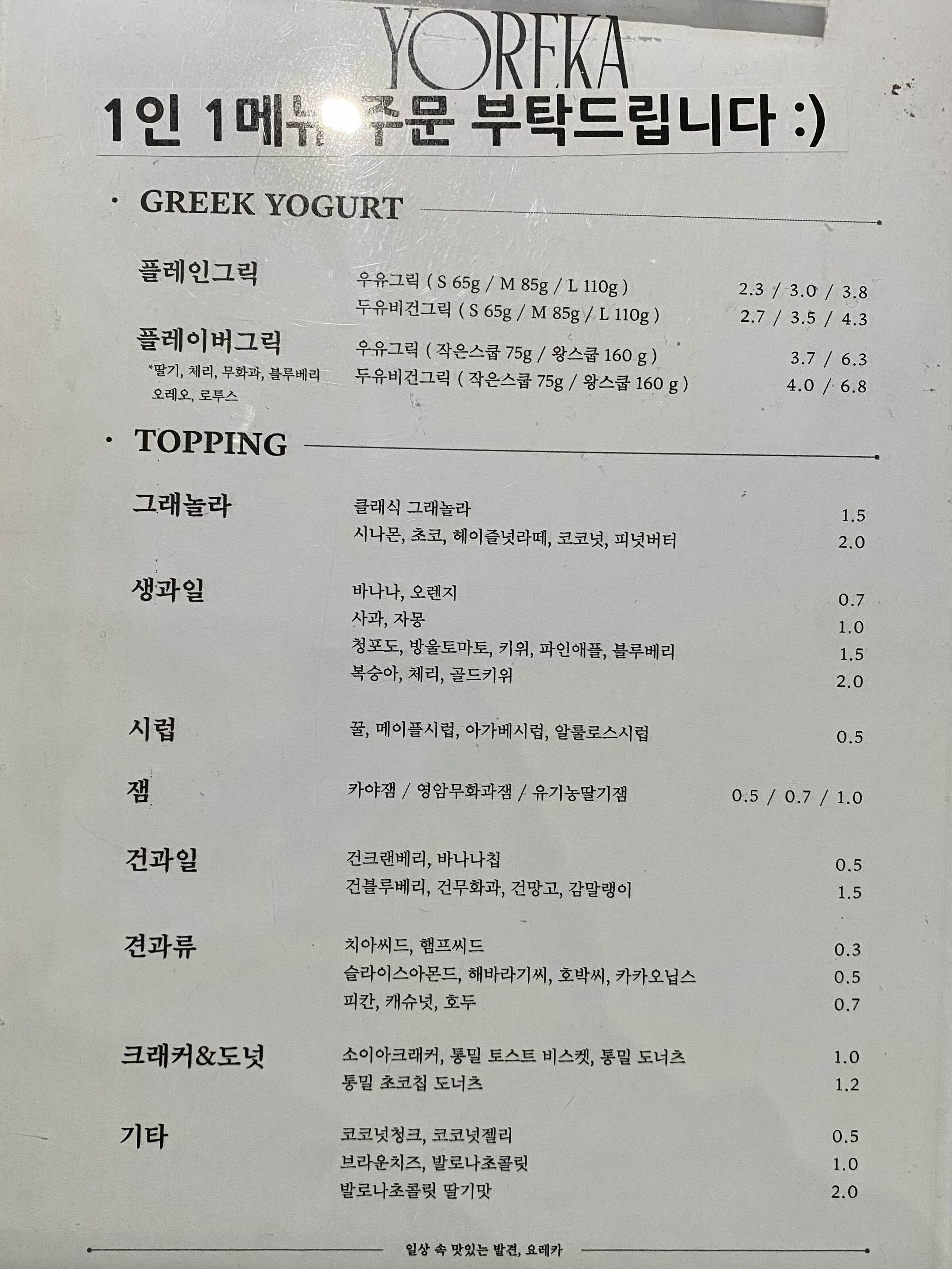 '요레카' <요거트 + 토핑> 메뉴판 2