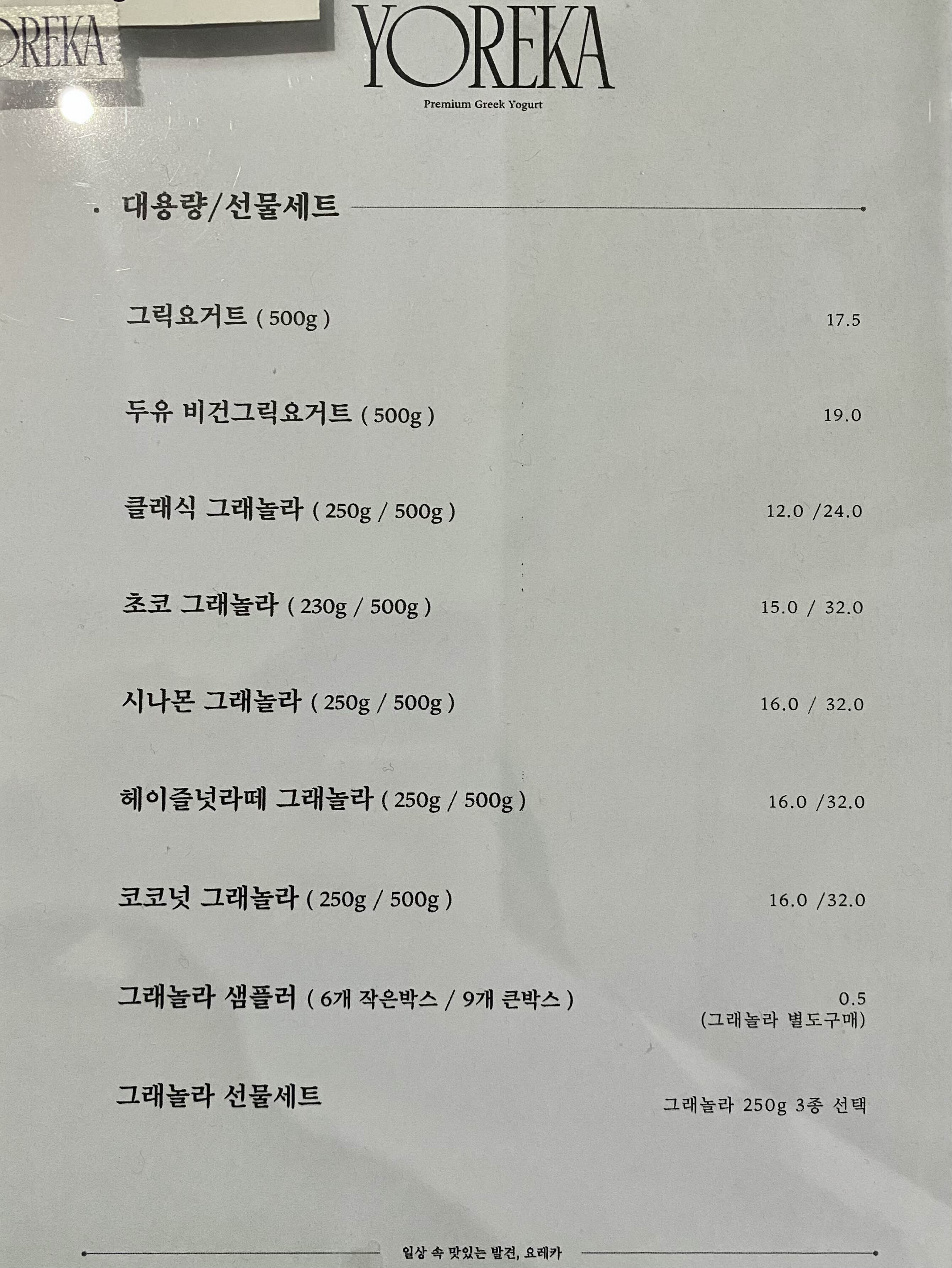 '요레카' <대용량 / 선물세트> 메뉴판 3